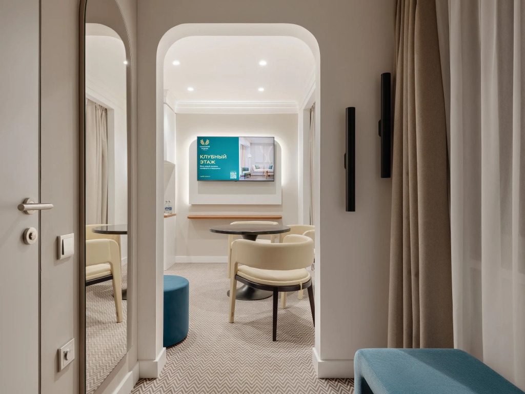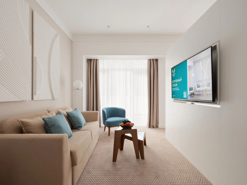 Проживание детей в возрасте от 0 до 4 лет в основном корпусе оплачивается в размере 2000.00 RUB в сутки, на клубном этаже 0-4 лет — 3200.00 RUB в сутки. Для детей возрастом от 4 до 10 лет стоимость рассчитывается в размере 25% от действующего прейскуранта на основном месте и 40% от действующего прейскуранта на дополнительном. Проживание детей от 10 до 14 лет на дополнительном месте оплачивается в размере 40% от действующего прейскуранта.