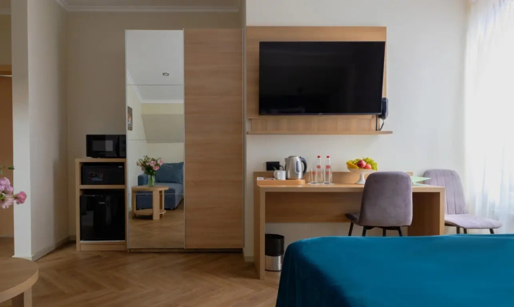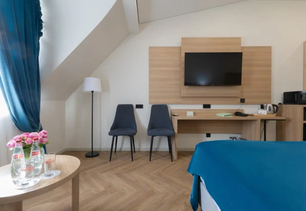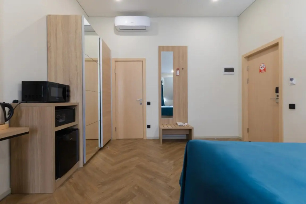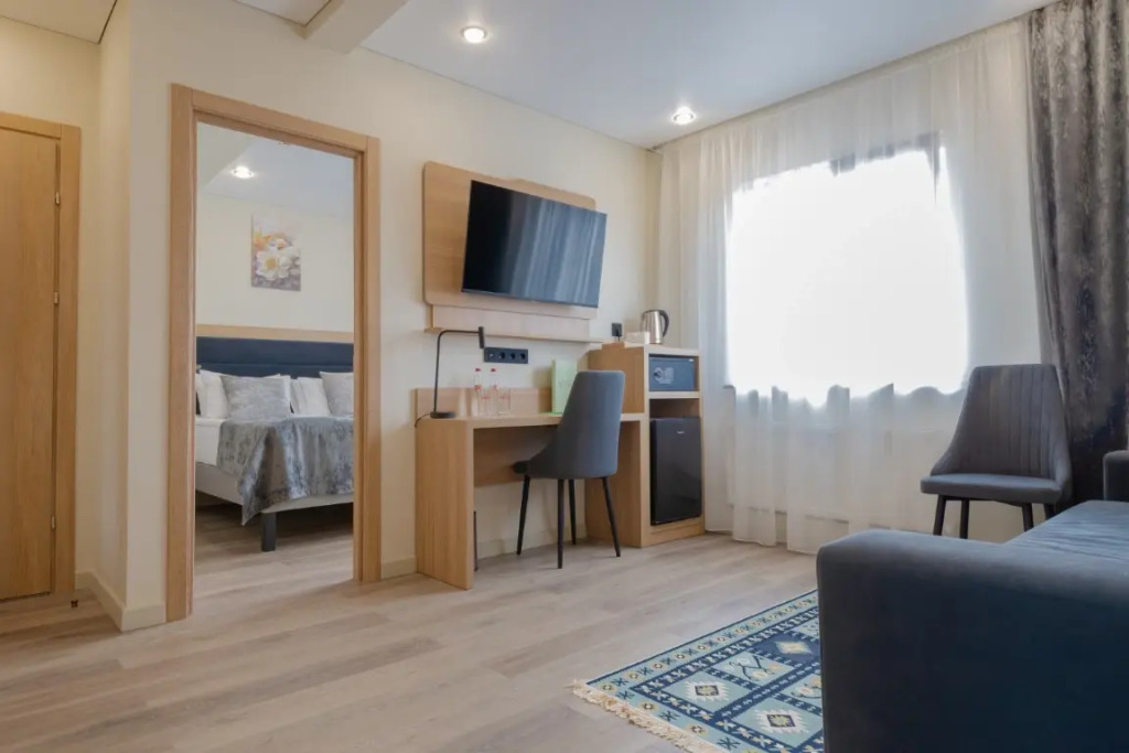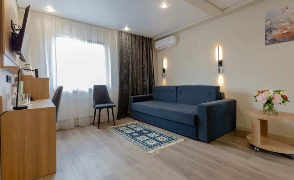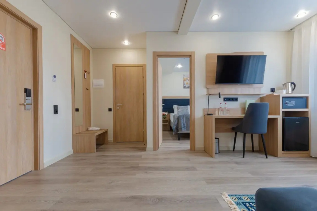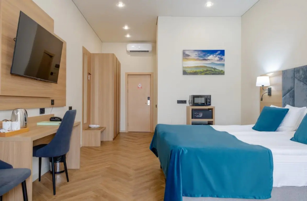 Номера обставлены и оснащены необходимым, чтобы отдохнуть после долгого и насыщенного дня. Имеется ТВ, холодильник, мини-бар, интернет, сейф, кондиционер.