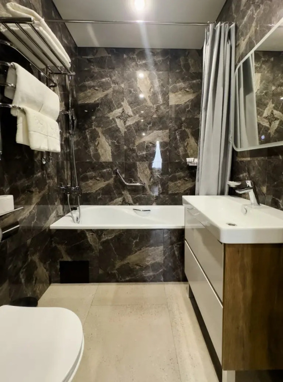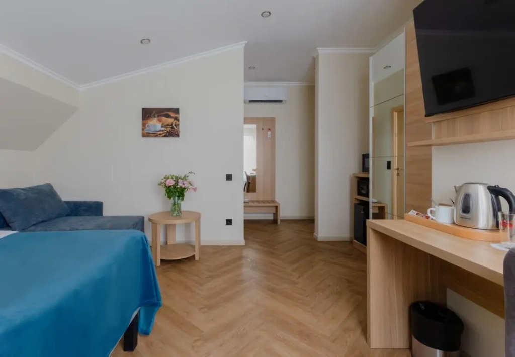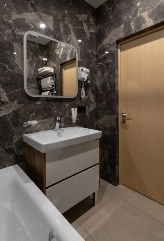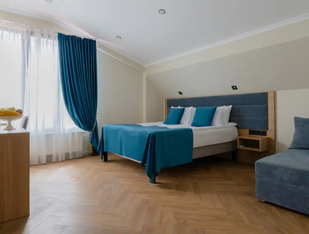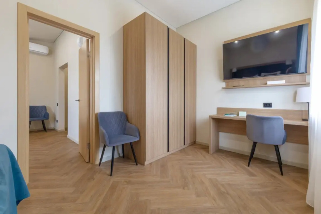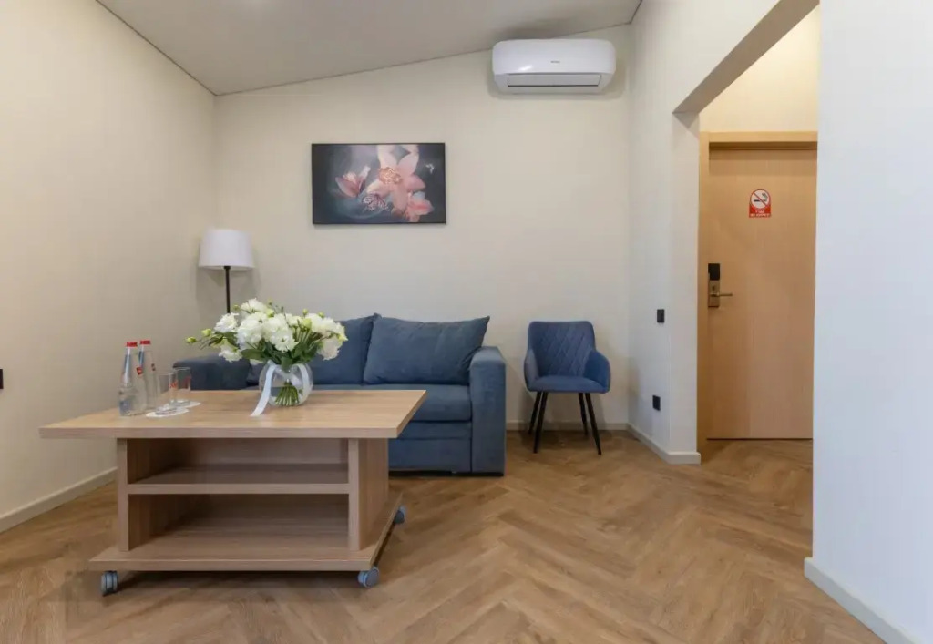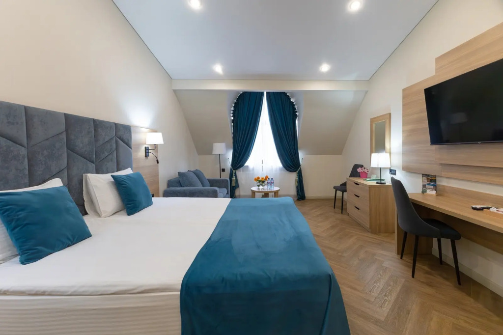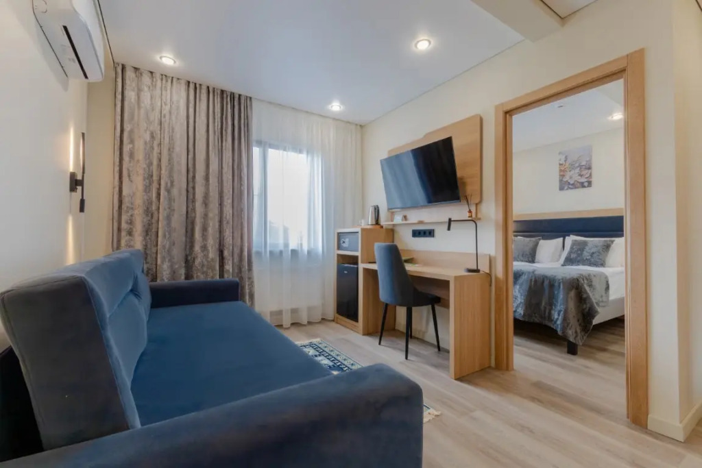 Номера обставлены и оснащены необходимым, чтобы отдохнуть после долгого и насыщенного дня. Имеется ТВ, холодильник, мини-бар, интернет, сейф, кондиционер.
