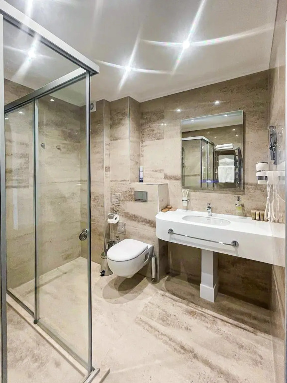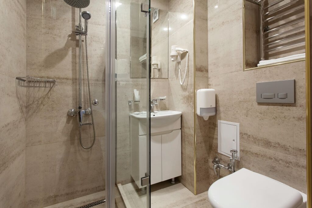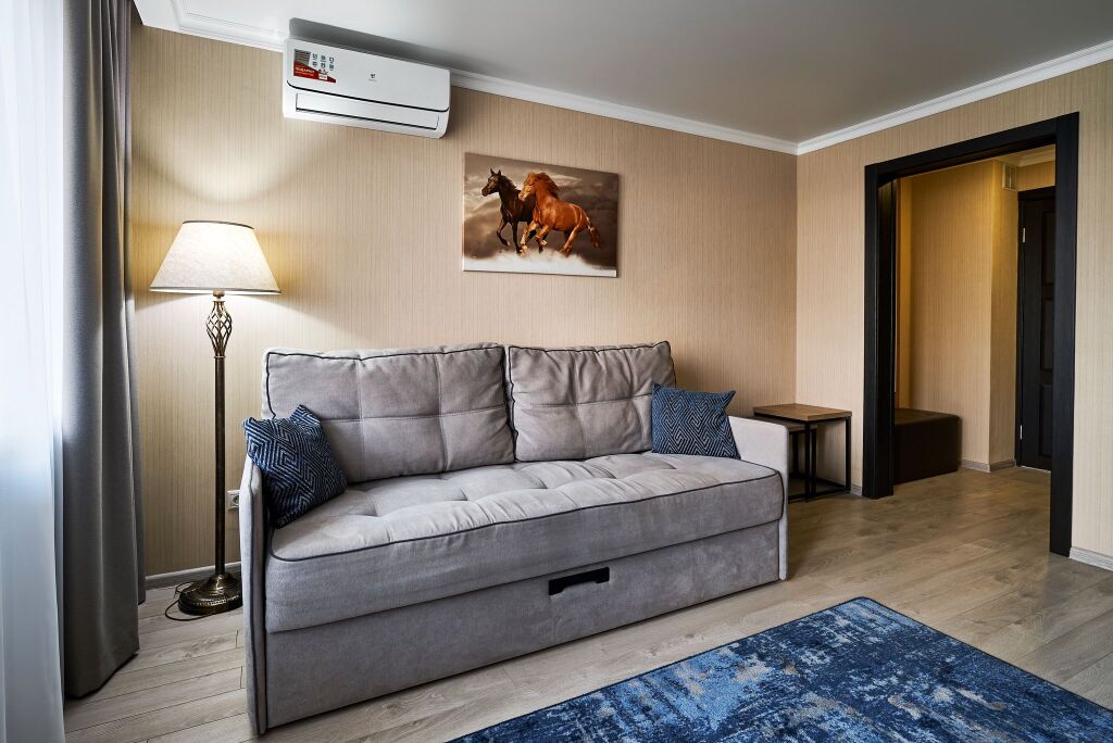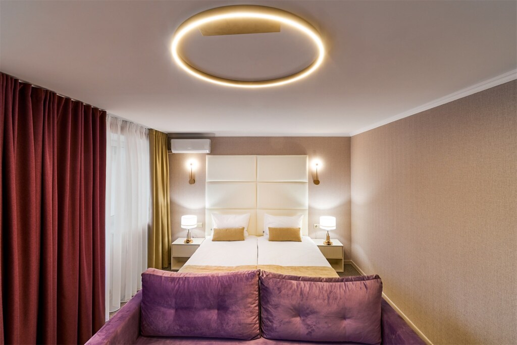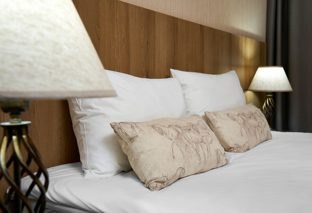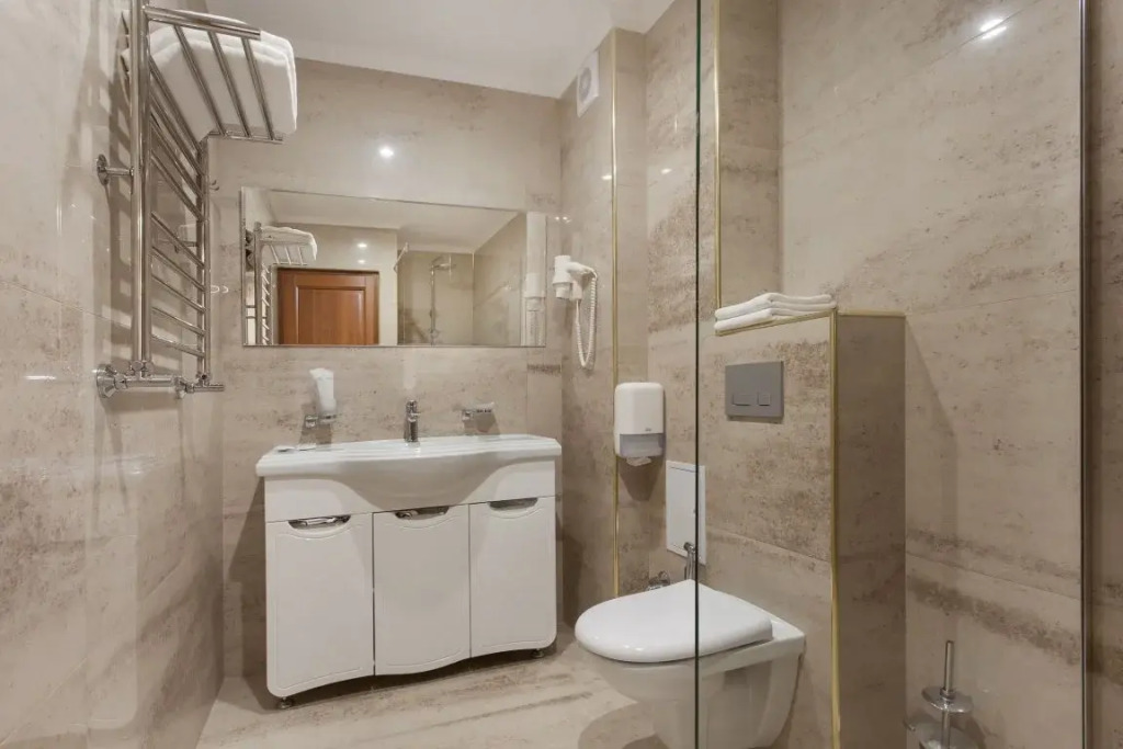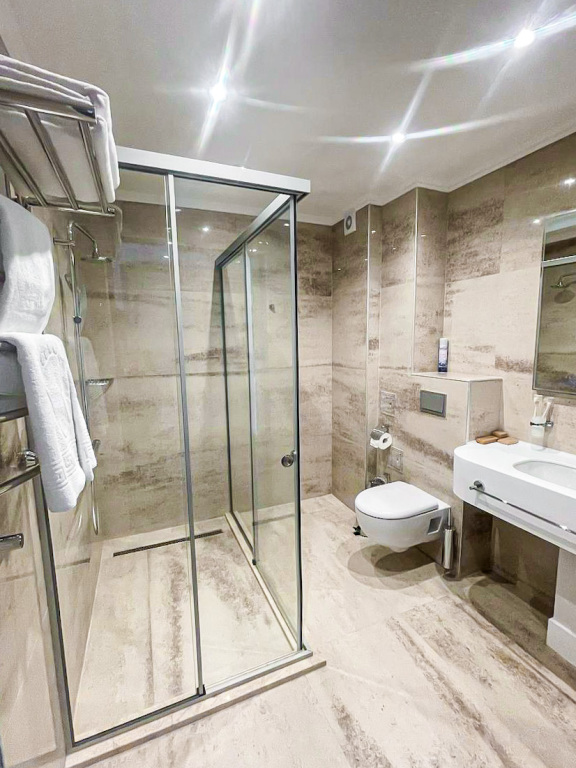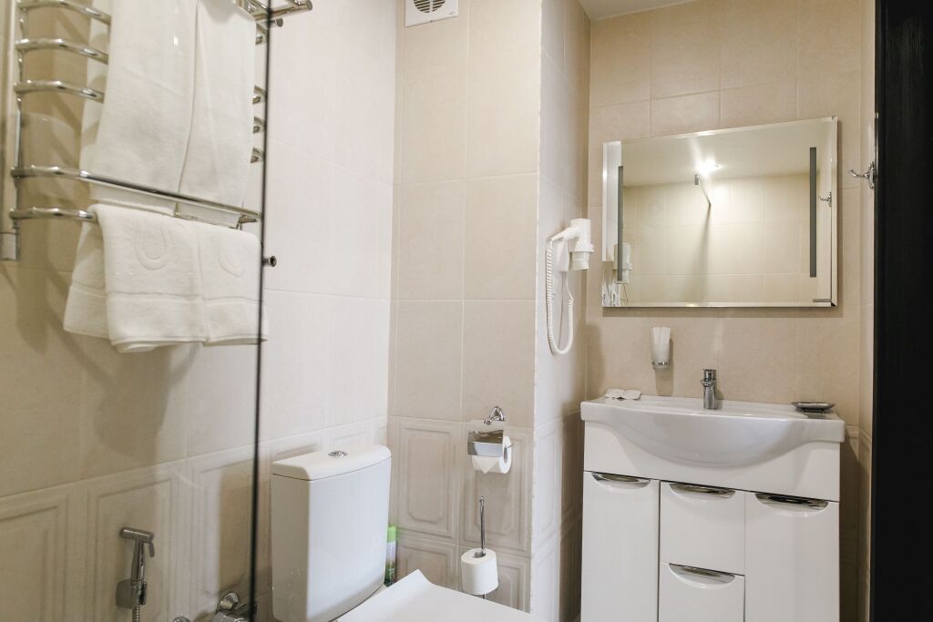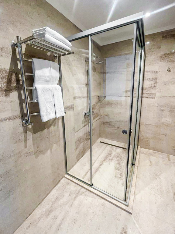 95 номеров санотория функционируют круглогодично. Во всех номерах: балкон, двуспальная или две односпальные кровати, кондиционер, телевизор, сейф, чайник, чайный набор, санузел с душевой кабиной, фен, тапочки, халат, косметические принадлежности.