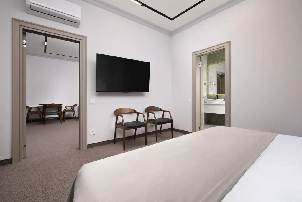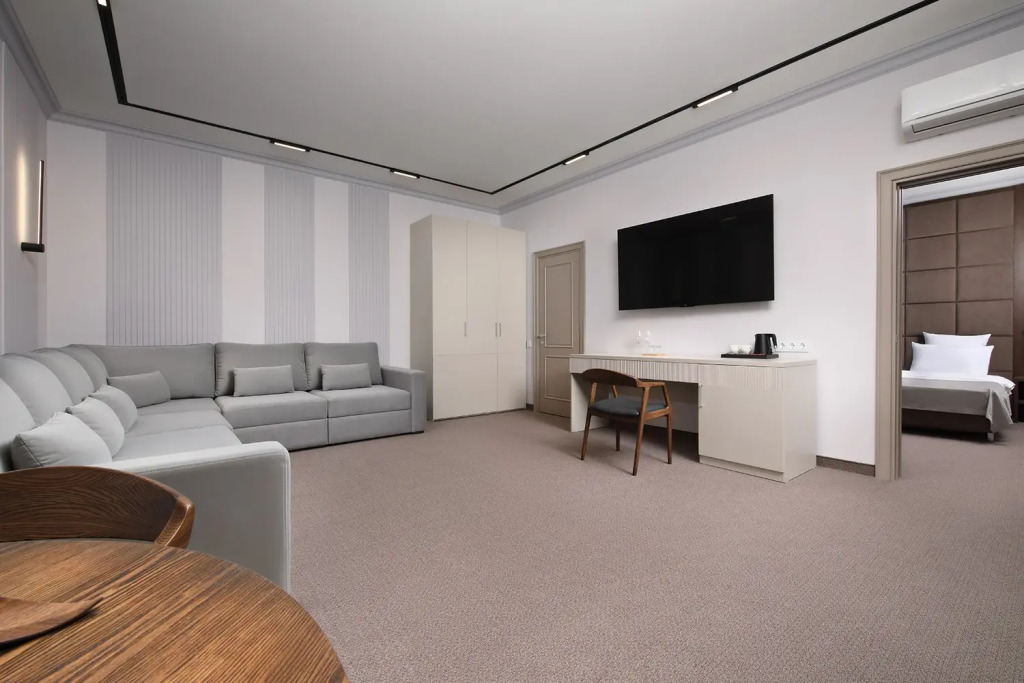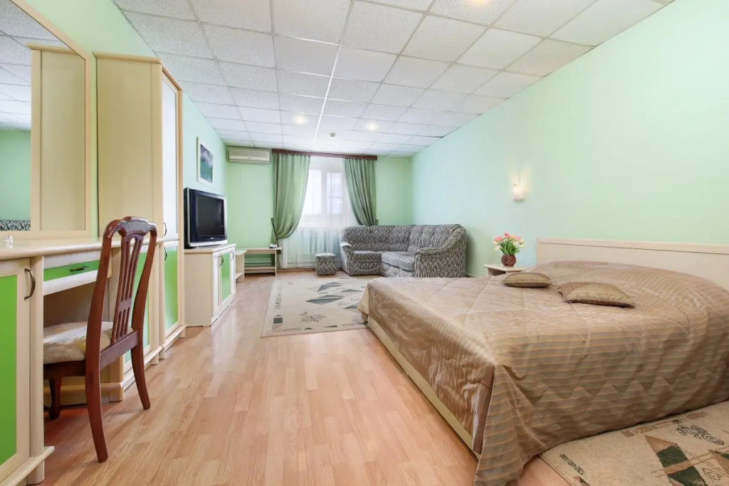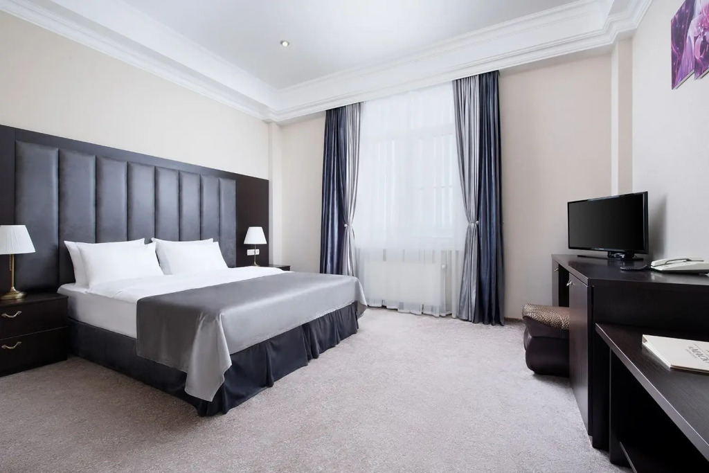 В номере вас будут ждать телевизор и мини-бар. Оснащение зависит от выбранной категории номера.