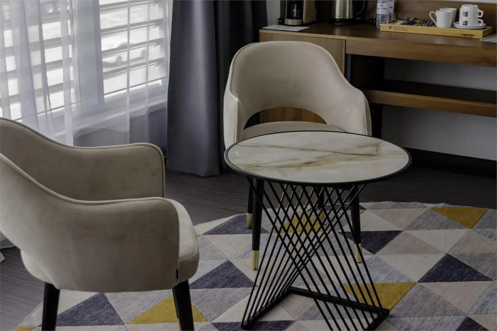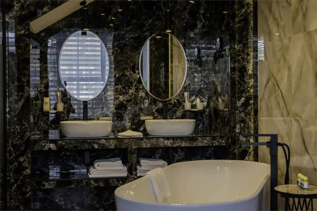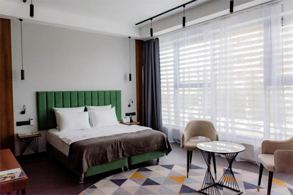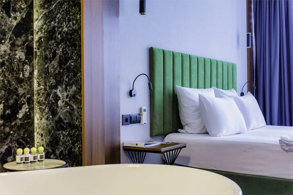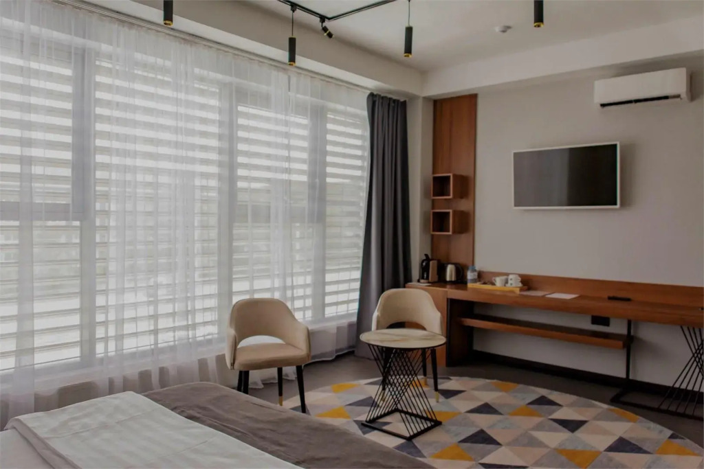 В номере вы найдёте телевизор, мини-бар и халат. Оснащение зависит от выбранной категории номера.