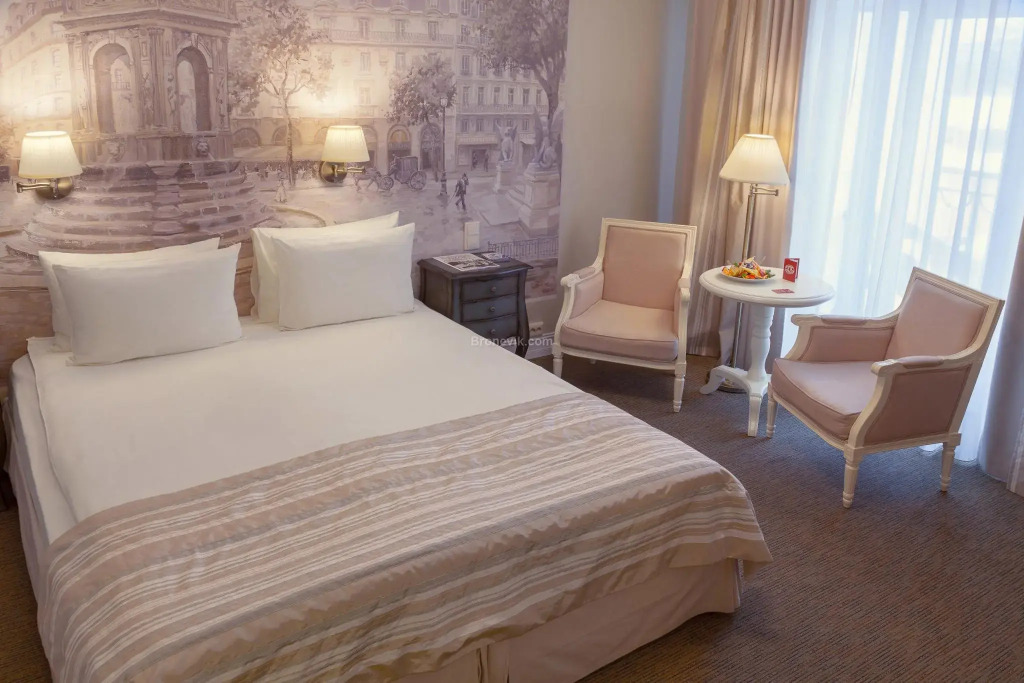 Чтобы вы могли отдохнуть после долгого дня, в номере есть будильник, телевизор, мини-бар, халат и тапочки. Перечисленные услуги есть не во всех номерах.