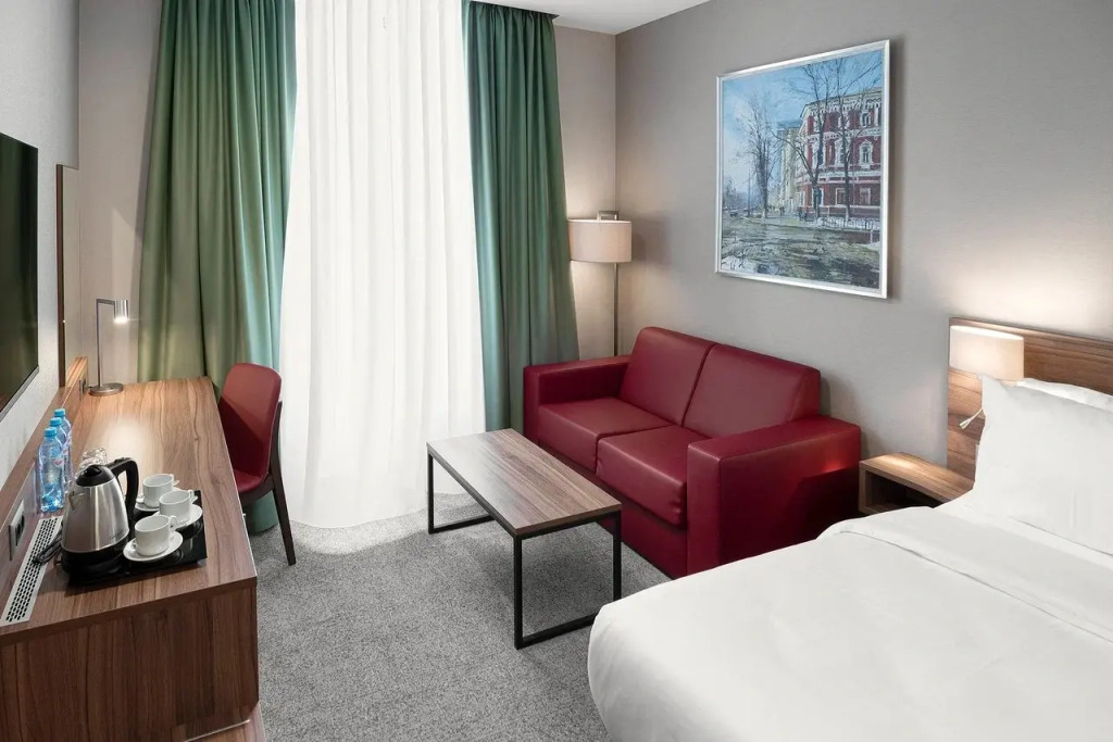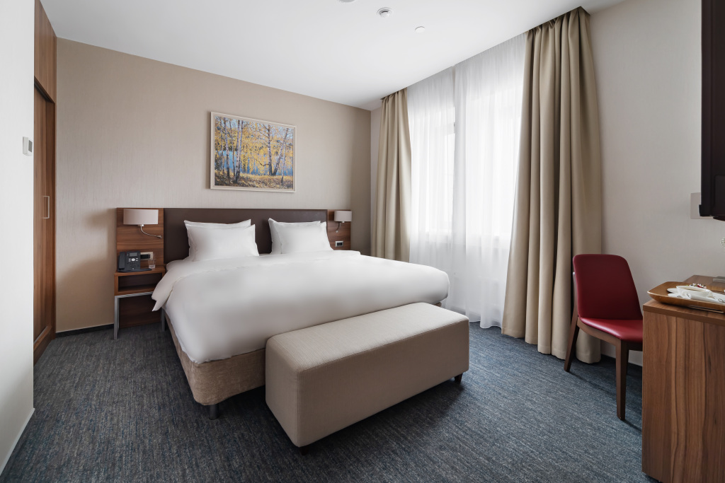 Отель обладает конференционным потенциалом, отличительной чертой которого является работа по мировым стандартам сервиса и гостеприимства. В номерном фонде представлены 6 категорий номеров, которые подойдут для размещения индивидуальных путешественников и корпоративных заказчиков. Отель может единовременно принять и разместить на площадке конгресс-центра до 500 гостей, а также организовать корпоративные и частные мероприятия разной направленности: бизнес-завтраки, переговоры, тренинги, семинары и стратегические сессии, конференции, банкеты и фуршеты. К услугам гостей: круглосуточная зона лобби, ресторан с авторскими блюдами русской кухни, фитнес-зал, обслуживание в номерах в круглосуточном режиме, панорамная VIP-зона с русским бильярдом и открытым баром на 10 этаже, собственная парковка, заказ трансфера.