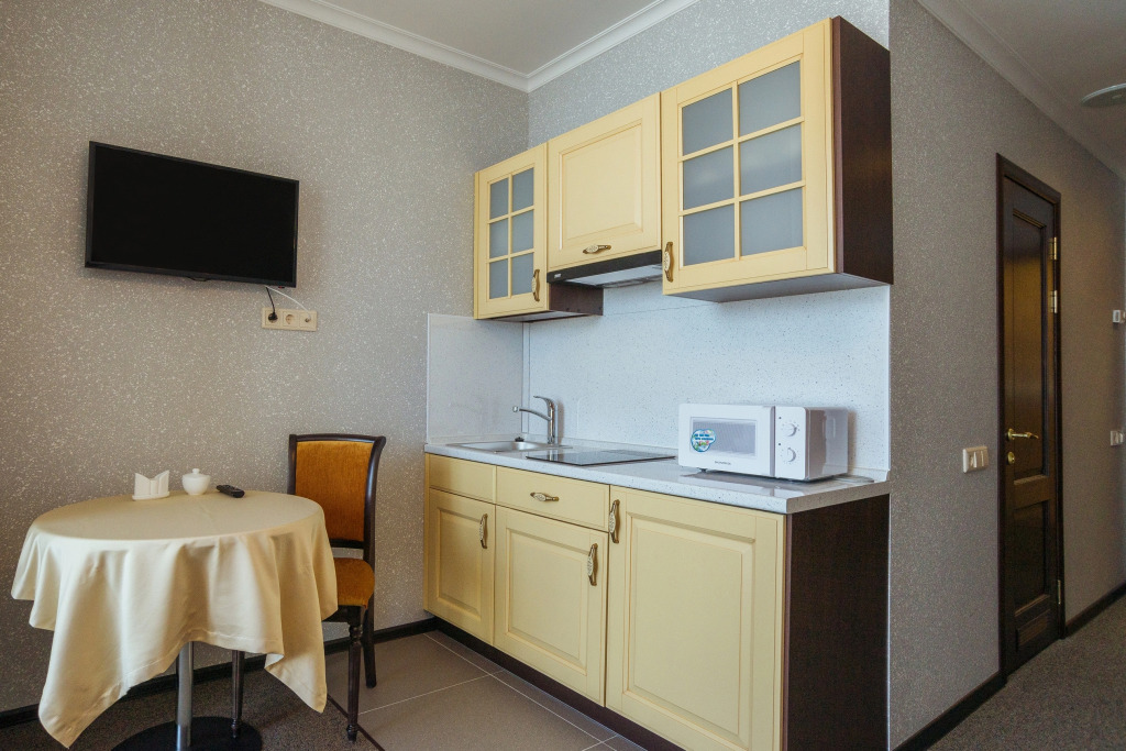 В номере вас будут ждать телевизор и мини-бар. Перечисленные услуги есть не во всех номерах.