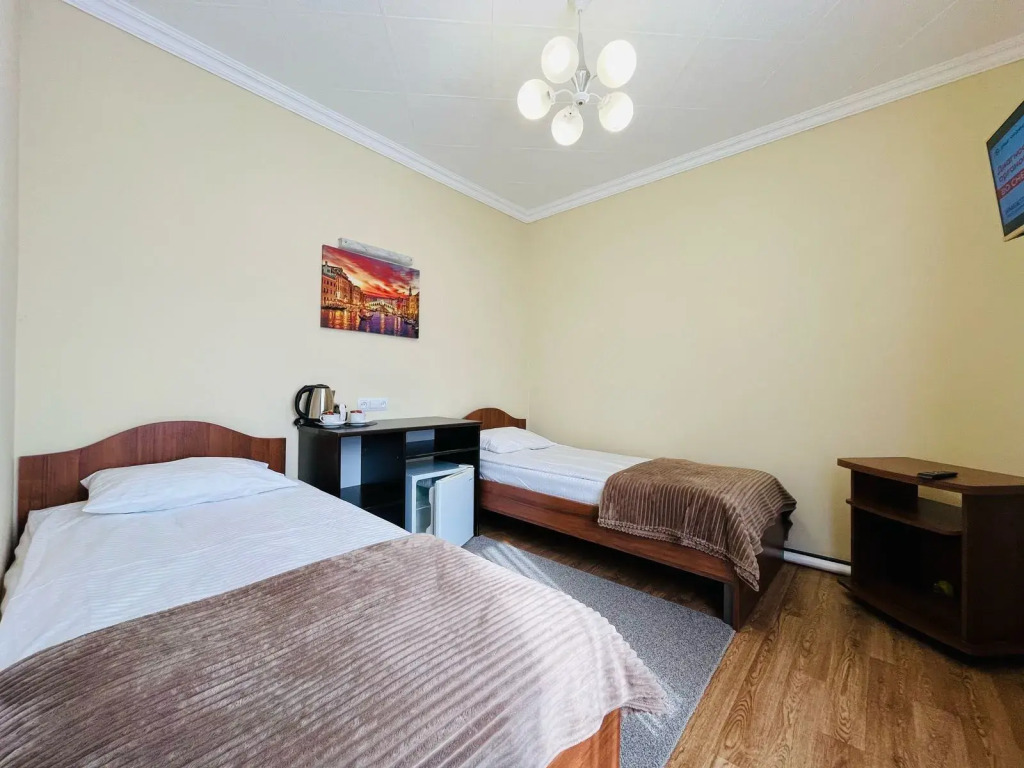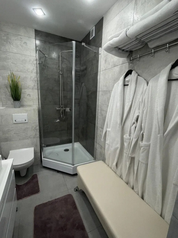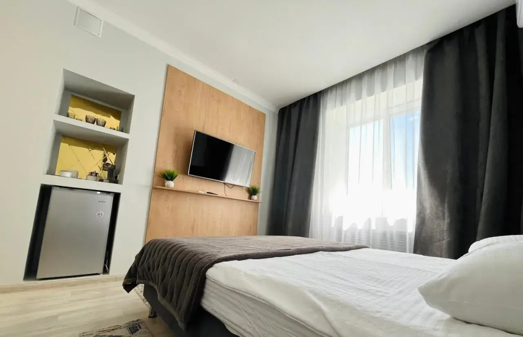 Чтобы вы могли отдохнуть после долгого дня, в номере есть телевизор и халат. Оснащение зависит от выбранной категории номера.