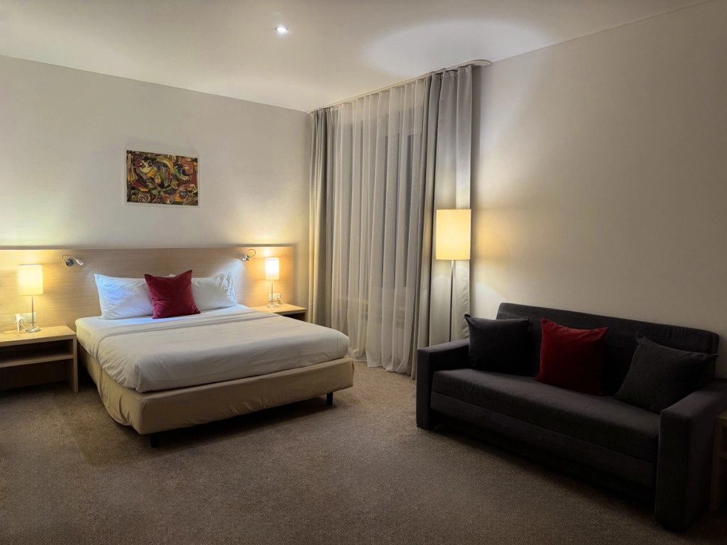 В других отзывах читала про плохую шумоизоляцию, но у нас не было с этим проблем, или из-за того что номер угловой был или соседи тихие были. Проживали в начале января, были морозы до -25, соответственно в номере был дубак. Номер большой, угловой, батареи не справлялись. Немного расстроила плесень в душевой, но это проблема многих отелей, поэтому общая моя оценка не 10.