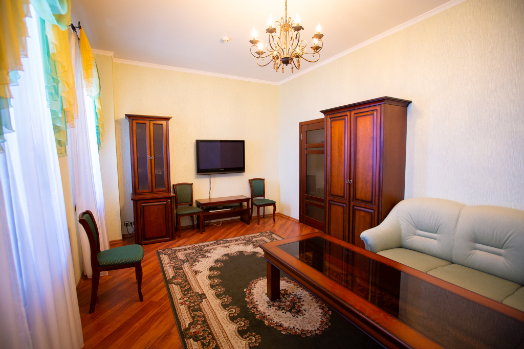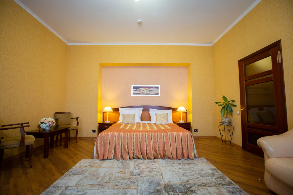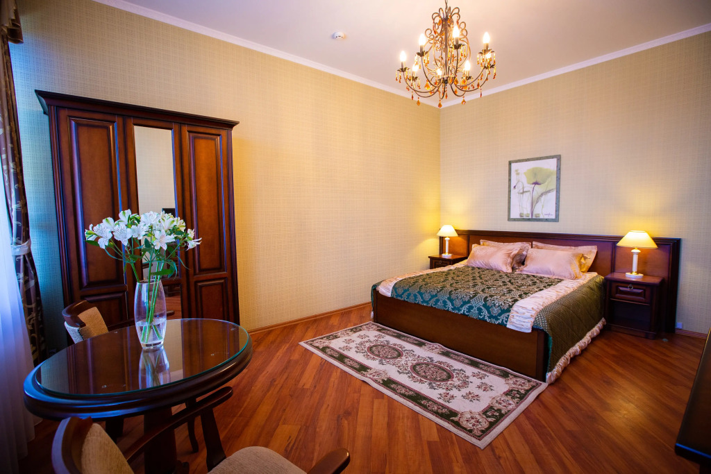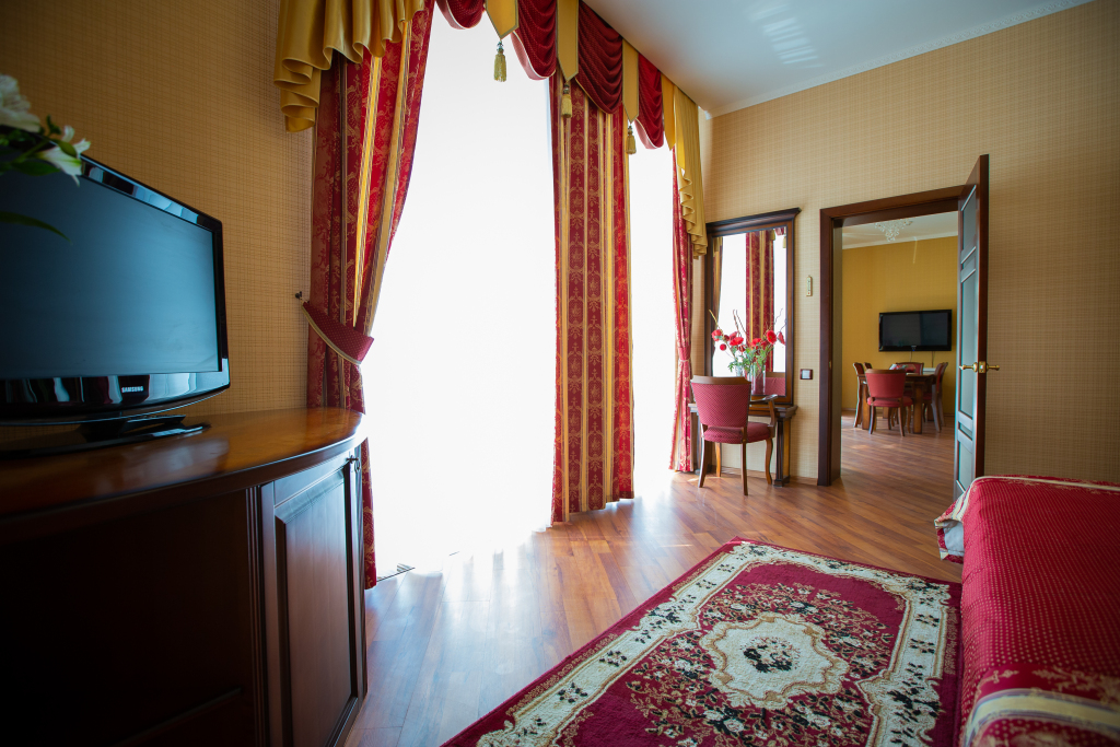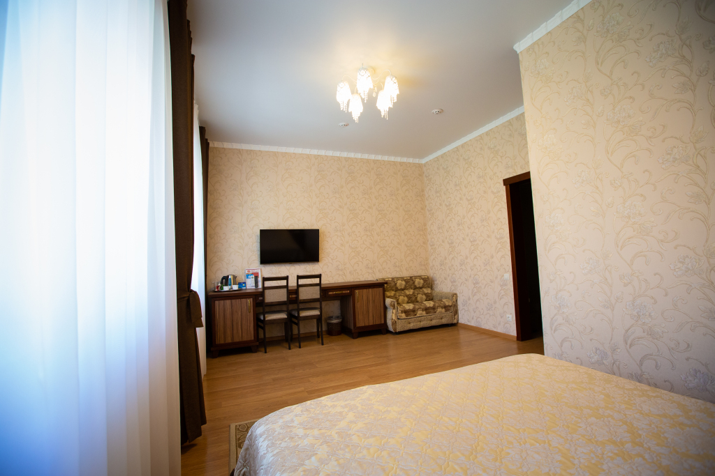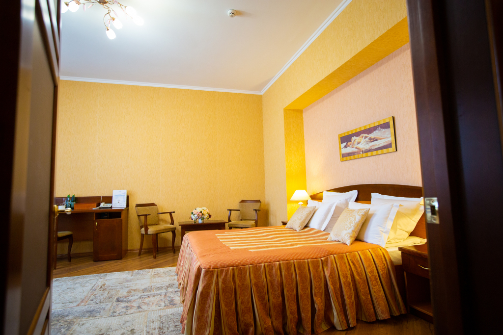 Номер уютно обставлен и оснащён необходимым, чтобы отдохнуть после долгого и насыщенного дня. Имеются DVD-плеер, будильник, душ, телевизор, мини-бар, халат и тапочки. Оснащение зависит от выбранной категории номера.