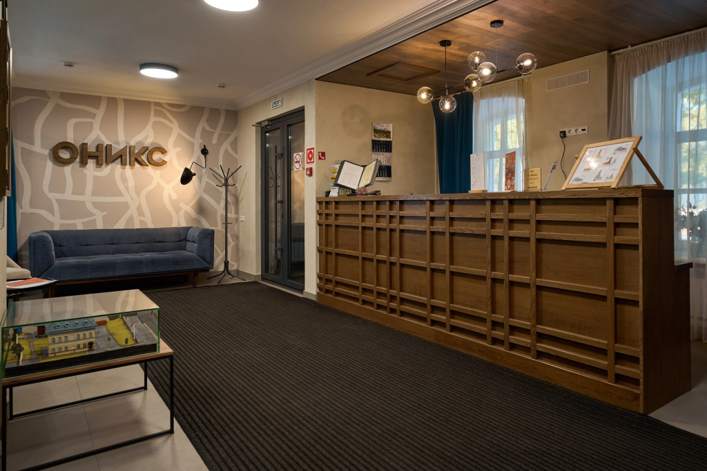 Отель «Оникс» расположился в историческом центре Торжка. На месте отеля ранее было древнее городище, защищённое водными рубежами: рекой Тверца и ручьём Здоровец. В пешей доступности от отеля находятся главные достопримечательности города: Спасо-Преображенский собор — 20 м, Новоторжский кремль — 100 м, городская набережная — 150 м, главная смотровая площадка Торжка — 300 м. Железнодорожная станция расположена в 1,5 км от отеля.