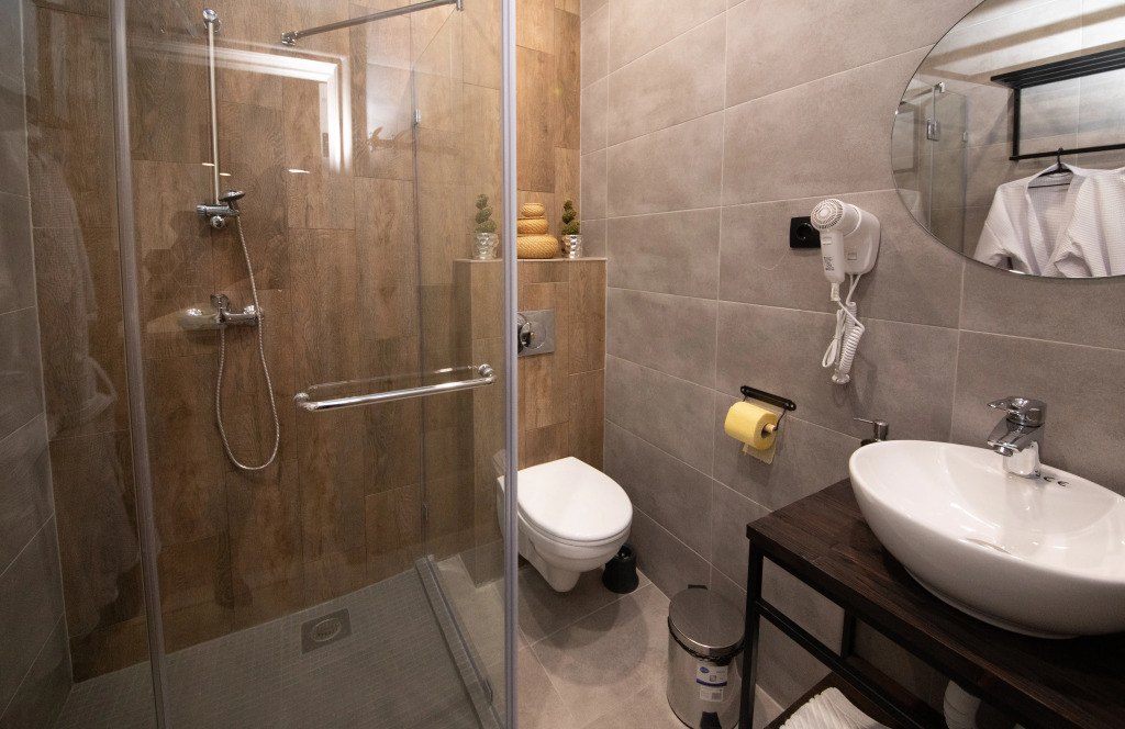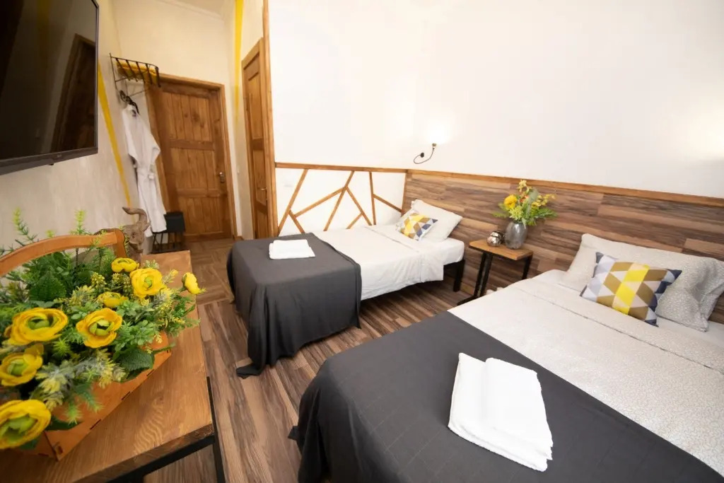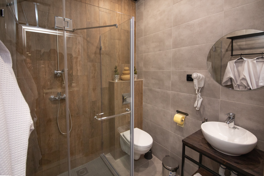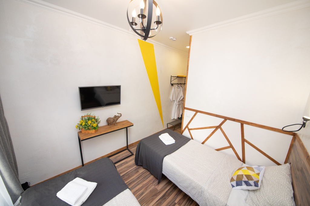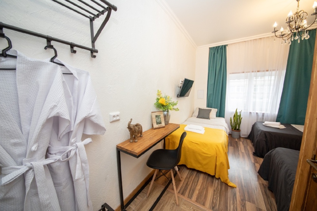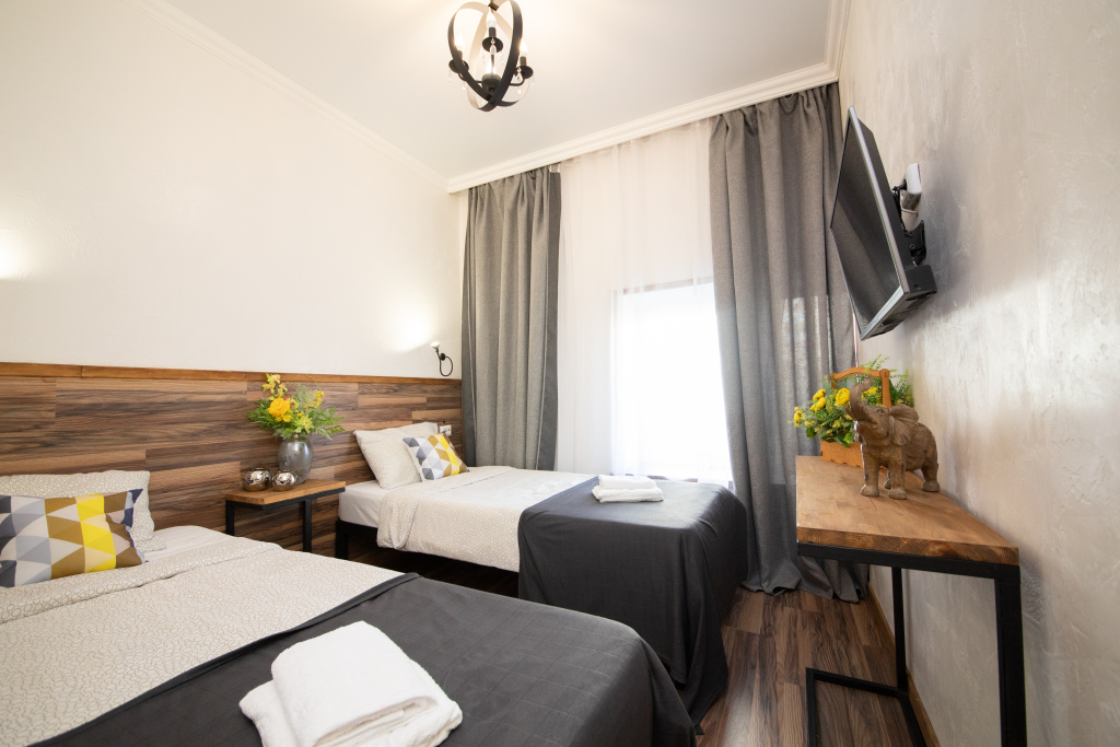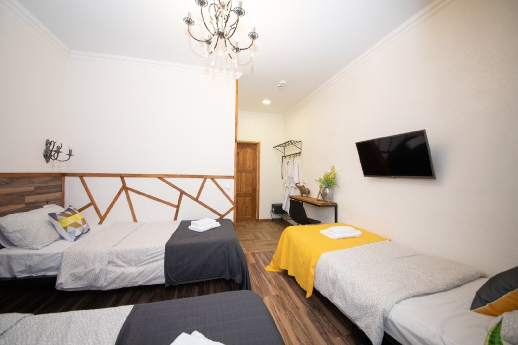 Номер уютно обставлен и оснащён необходимым, чтобы отдохнуть после долгого и насыщенного дня. Имеются телевизор и халат. Перечисленные услуги есть не во всех номерах.