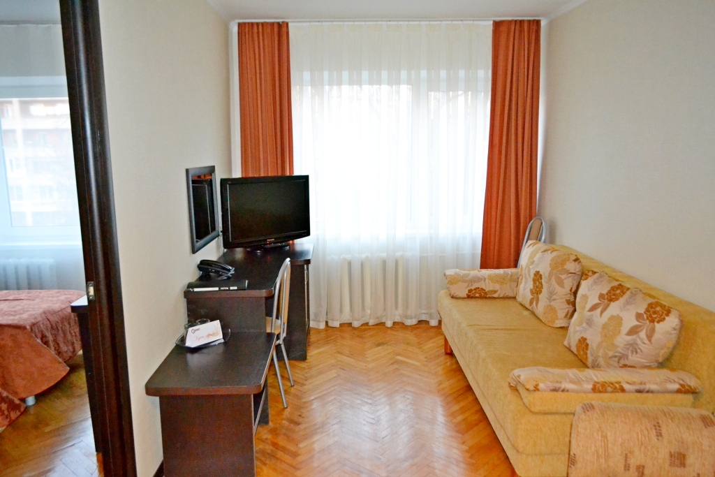 Номер уютно обставлен и оснащён необходимым, чтобы отдохнуть после долгого и насыщенного дня. Имеются телевизор. Перечисленные услуги есть не во всех номерах.