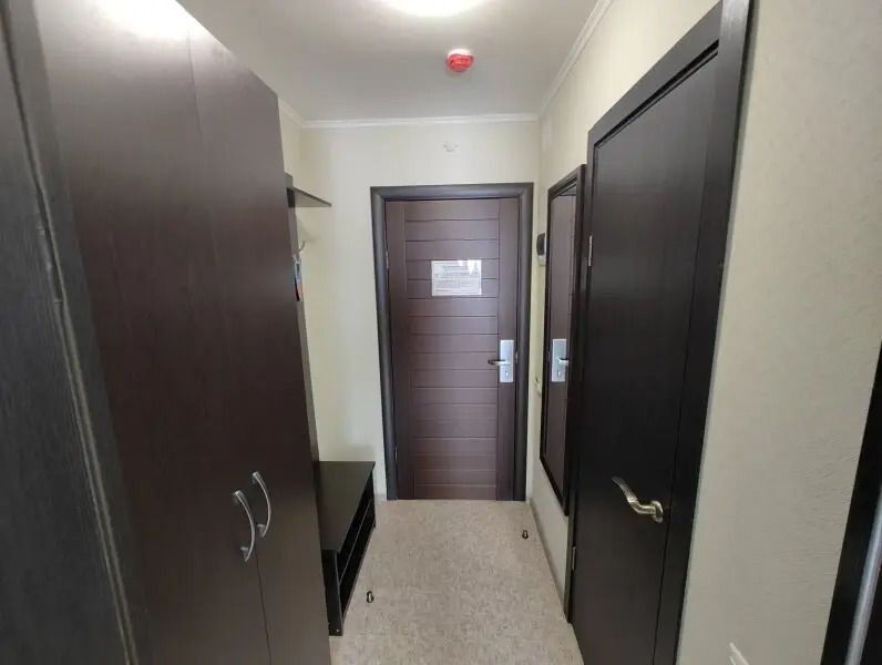 Все чисто, аккуратно, мебель новая. Есть телевизор, холодильник , чайник, фен, большой шкаф, стол, стулья. Прихожая отделяется дверью.