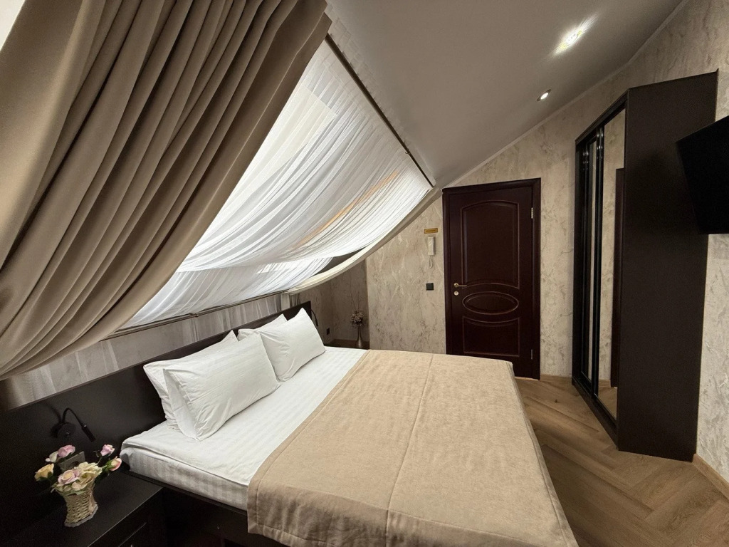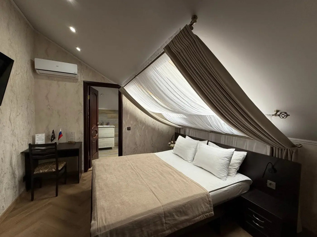 В номере комфорт удобные матрасы, чисто, уютно, все есть - даже стол со стулом. В гостинице не очень хорошая шумоизоляция, может мешать шум от других гостей. Поздно вечером громко лаяла собака с соседних дворов, мешала засыпать, но ночью стало тихо