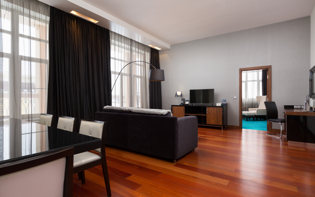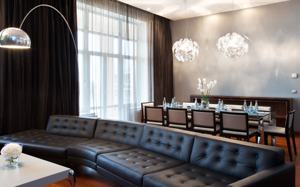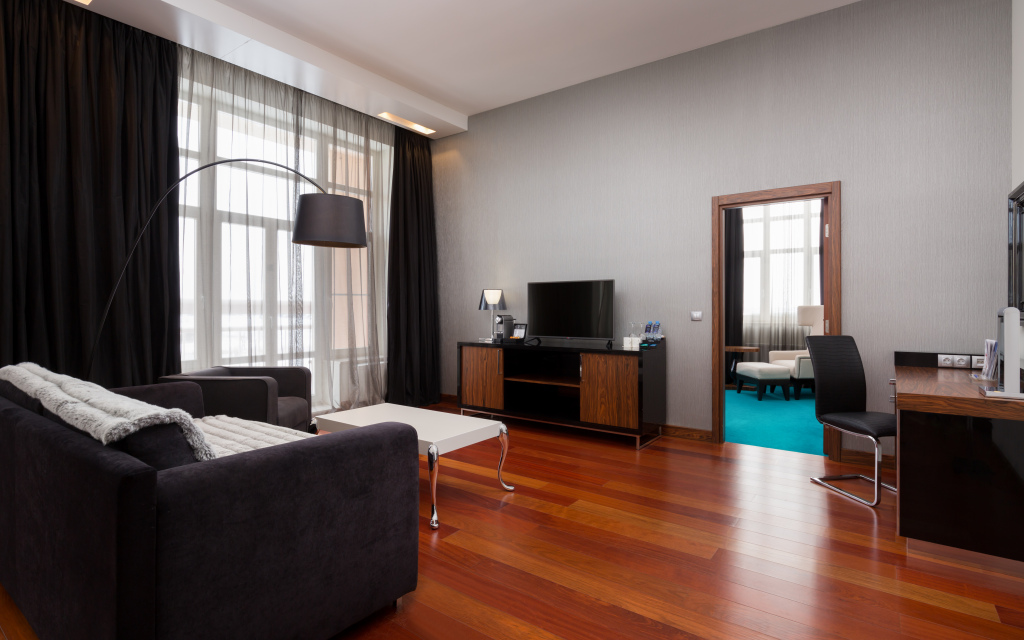 В номере гостей будут ждать телевизор, холодильник, рабочий стол, халат и тапочки. Оснащение зависит от выбранной категории номера.