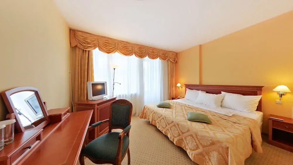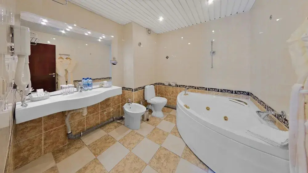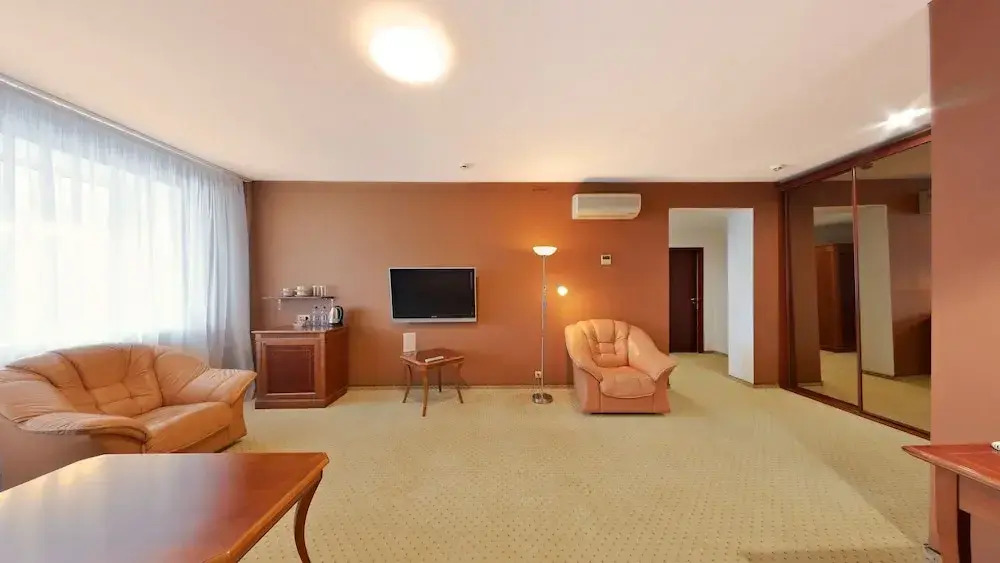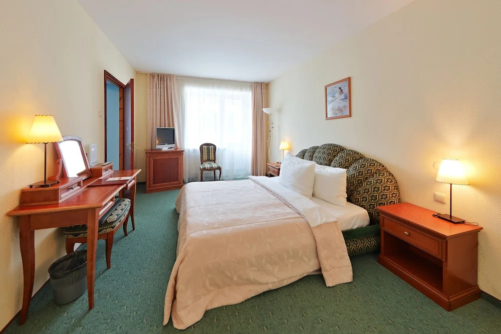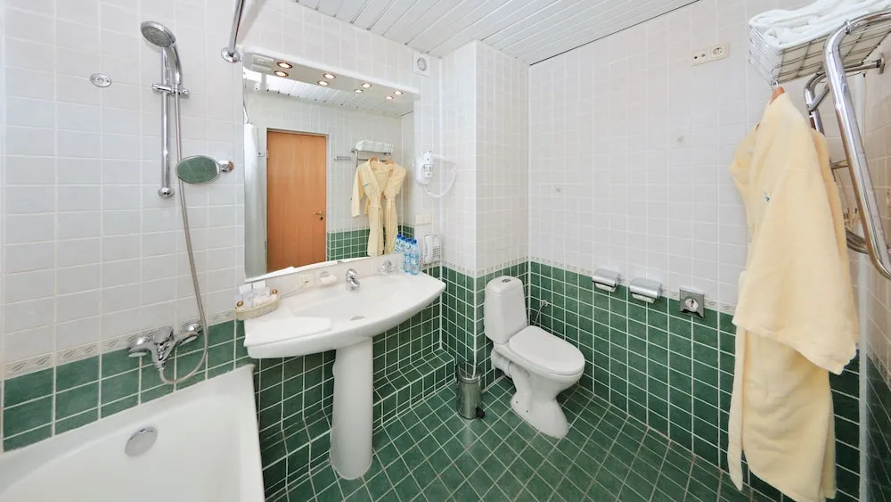 В номере вас будут ждать душ, телевизор, халат и тапочки. Перечисленные услуги есть не во всех номерах.