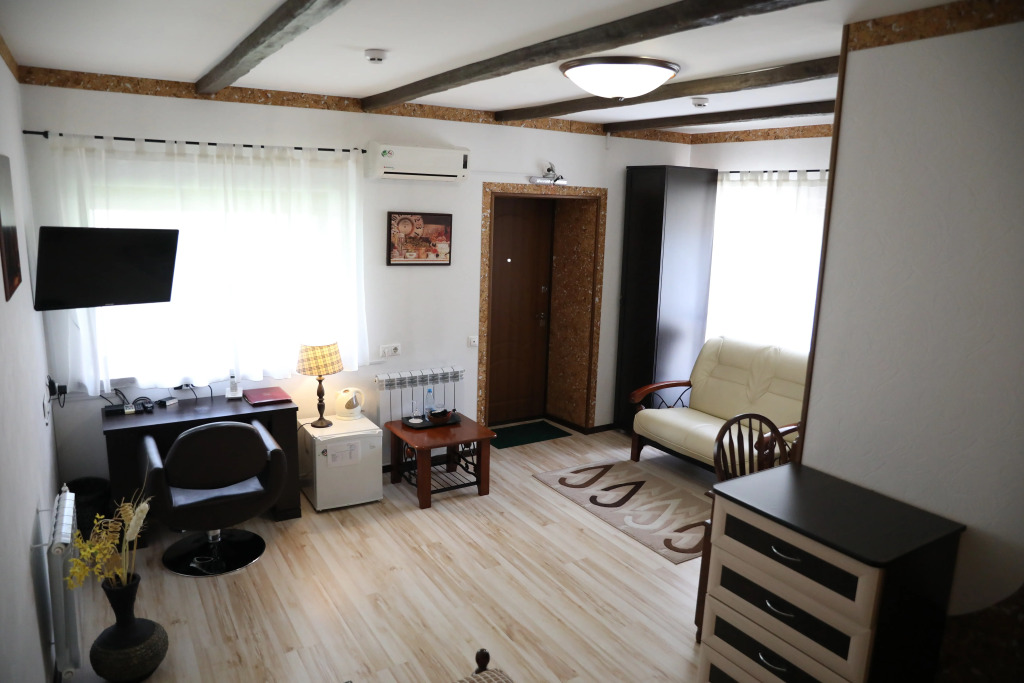 Здание отеля расположено на зелёном участке в окружении взрослых сосен с зоной барбекю и частной бесплатной парковокой.
