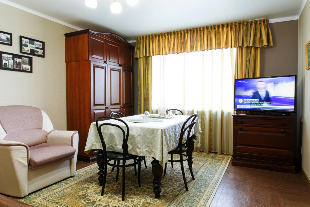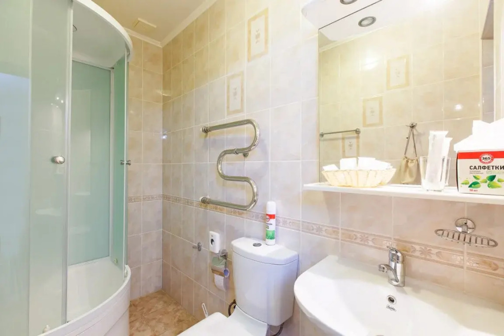 В номере гостей ждут телевизор и халат. Оснащение зависит от выбранной категории номера.
