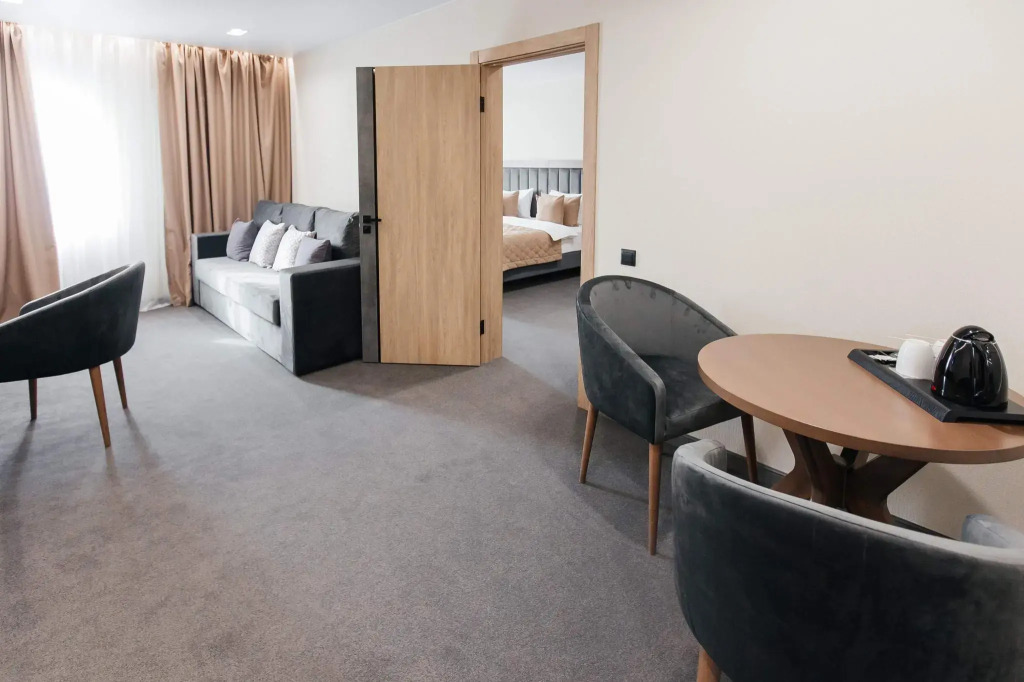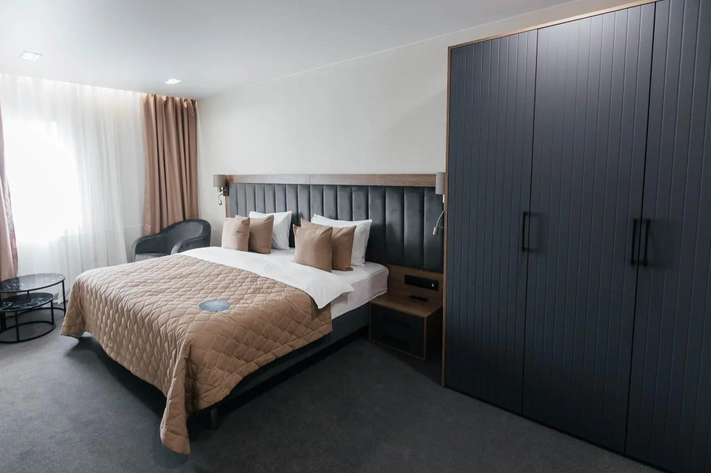 Номер уютно обставлен и оснащён необходимым, чтобы отдохнуть после долгого и насыщенного дня. Имеются телевизор. Оснащение зависит от выбранной категории номера.