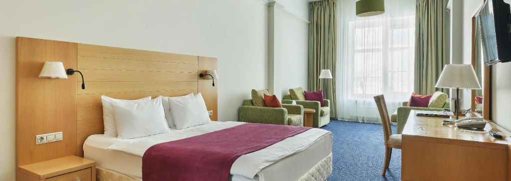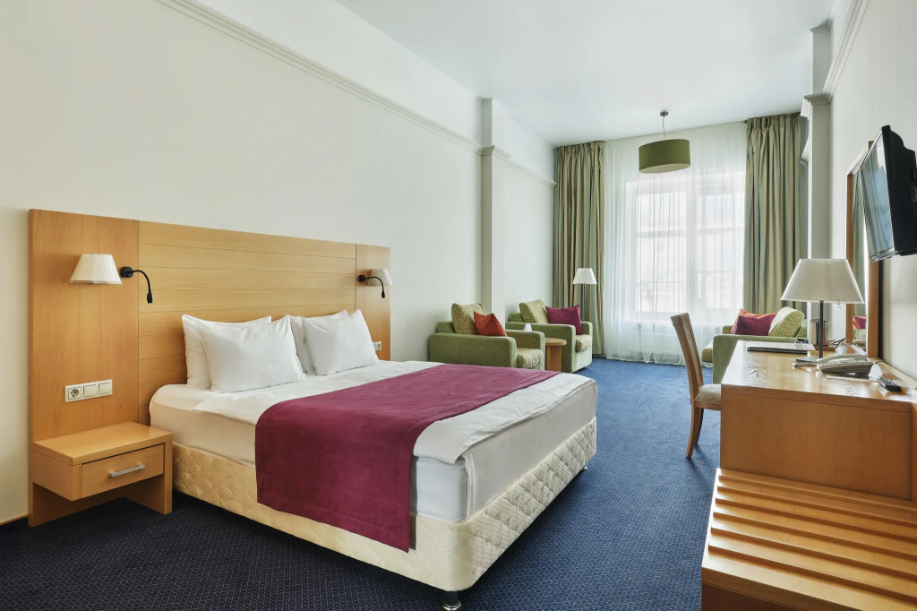 В отеле 87 номеров разных категорий площадью от 29 кв.м. до 60 кв.м. Во всех номерах отеля есть широкая кровать queen-size 180х200 см с ортопедическим матрасом или две отдельные кровати, гипоаллергенное постельное бельё, халат, тапочки, система кондиционирования, Wi-Fi, бесплатный набор напитков, который пополняется ежедневно, индивидуальный электронный сейф, спутниковый ТВ, телефон с междугородней и международной связью. В ванной комнате есть пол с подогревом, фен и косметические принадлежности: мыло, шампунь, зубная щетка, бритвенный набор.