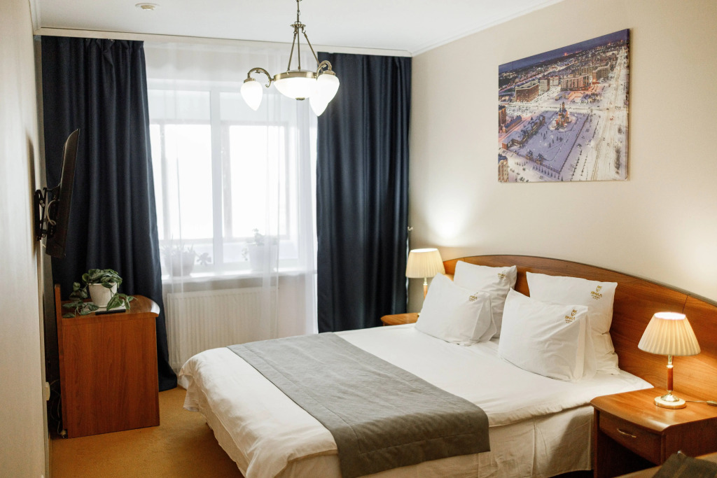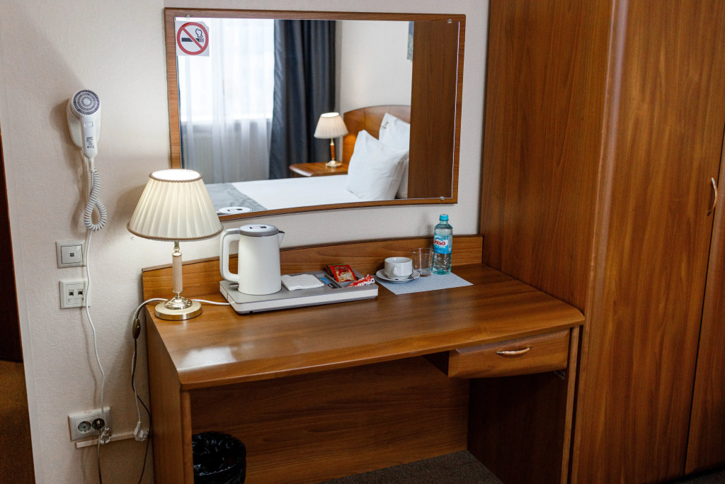 Номер уютно обставлен и оснащён необходимым, чтобы отдохнуть после долгого и насыщенного дня. Имеются телевизор и халат. Перечисленные услуги есть не во всех номерах.