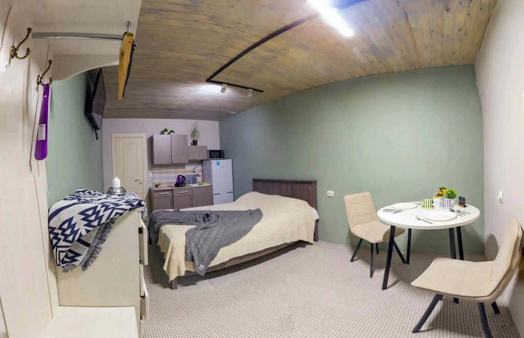 Номер уютно обставлен и оснащён необходимым, чтобы отдохнуть после долгого и насыщенного дня. Имеются телевизор. Оснащение зависит от выбранной категории номера.