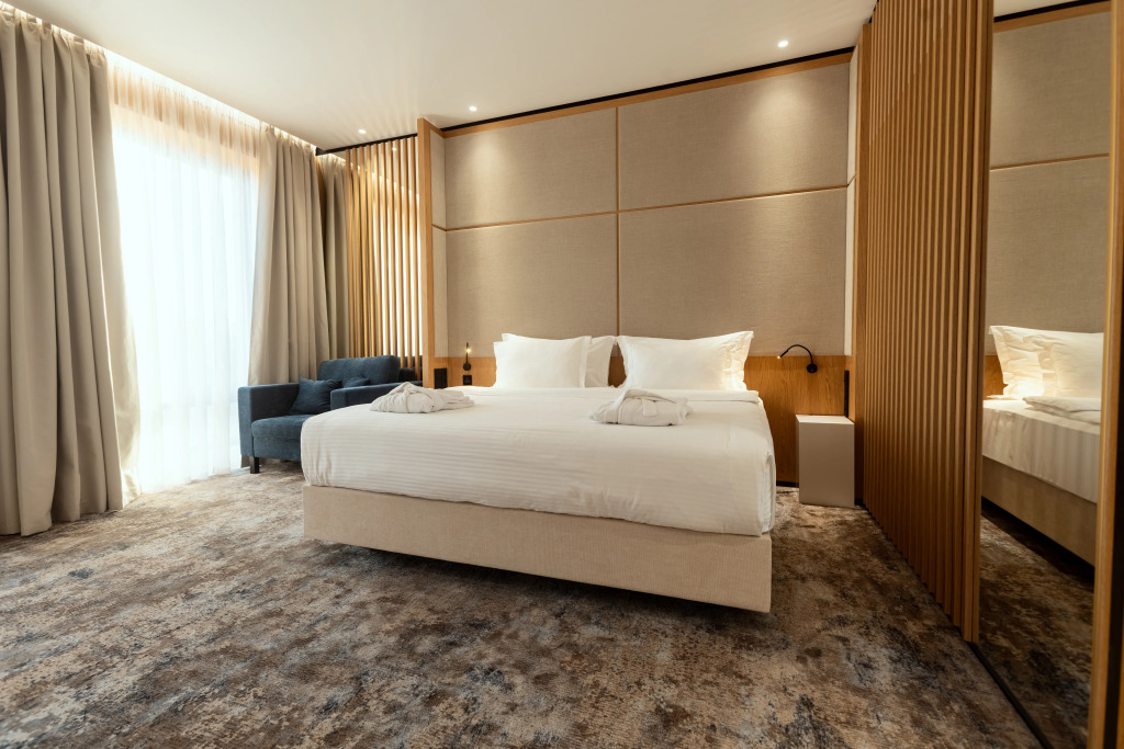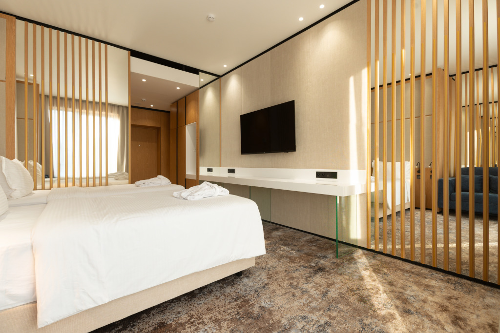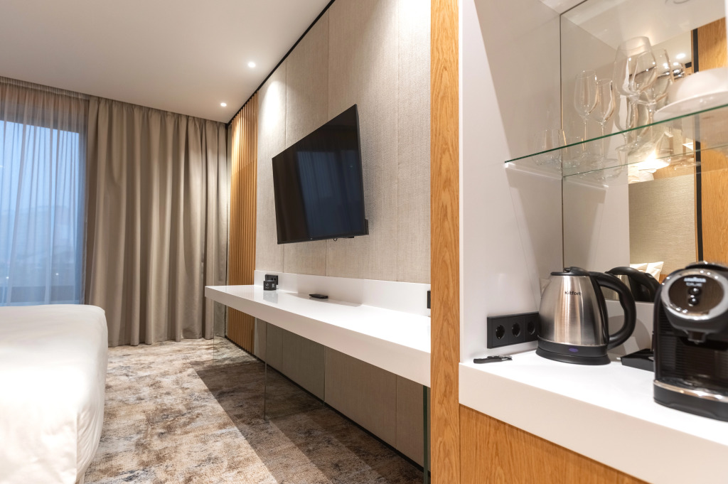 Номер уютно обставлен и оснащён необходимым, чтобы отдохнуть после долгого и насыщенного дня. Имеются телевизор и мини-бар. Оснащение зависит от выбранной категории номера.
