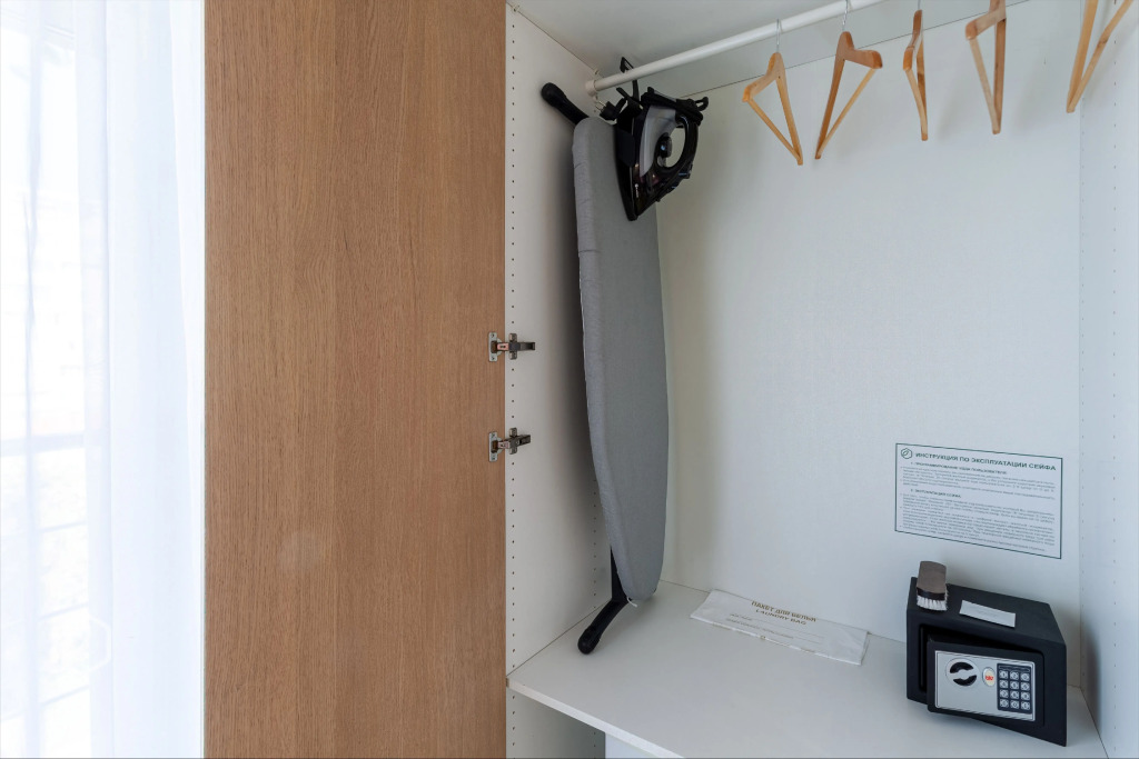 В каждой комнате: бутилированная вода, чайная станция, утюг, гладильная доска, фен, халат, сейф, мини-бар, одноразовые предметы гигиены.