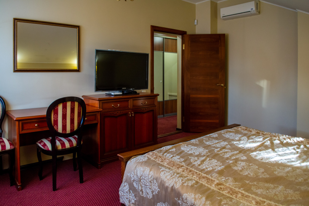 Чтобы вы могли отдохнуть после долгого дня, в номере есть телевизор и халат. Перечисленные услуги есть не во всех номерах.
