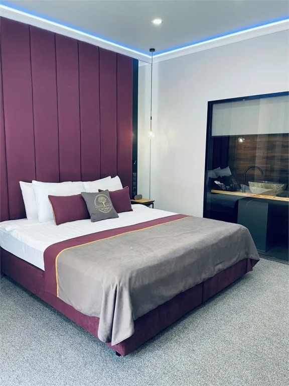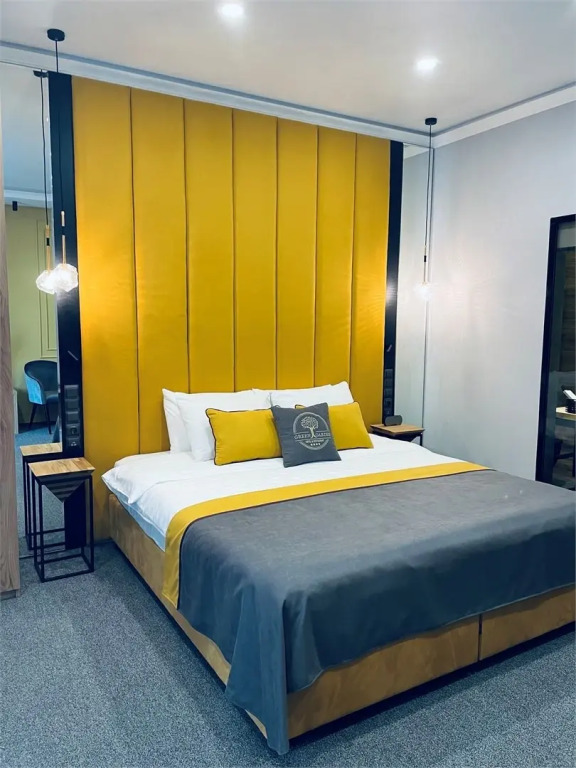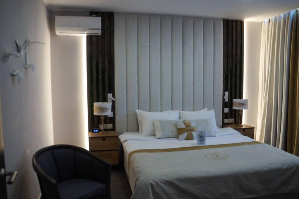 Большой номер с огромной кроватью. Все оборудования номера и ванной очень хорошее. Предлагается много аксессуаров для ванной