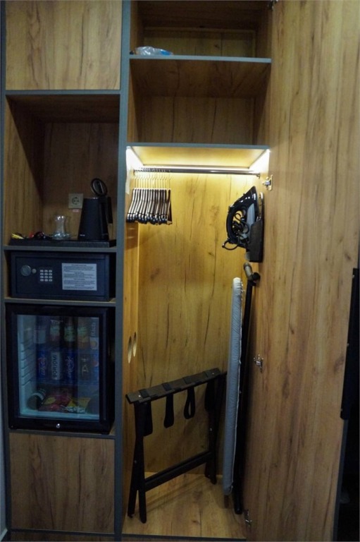 Холодильник заполнен продуктами мини-бара, свои продукты ставить не куда,