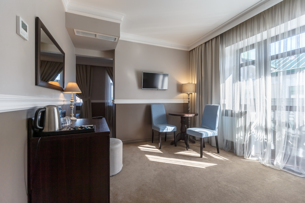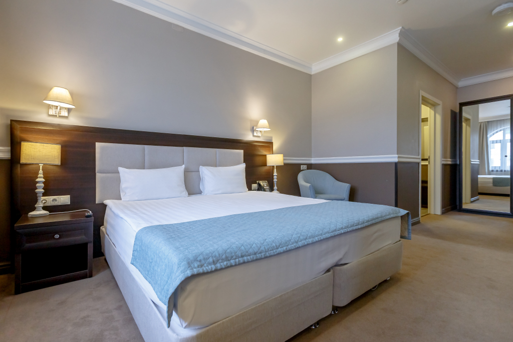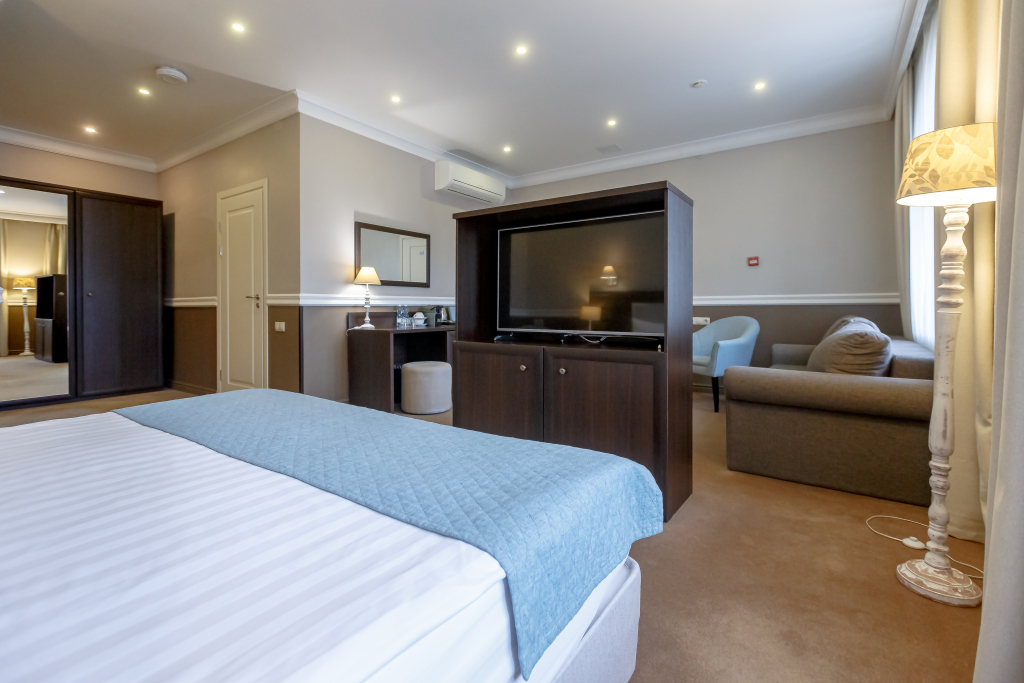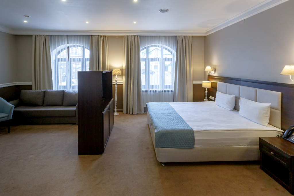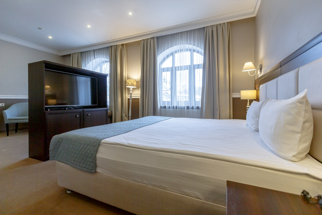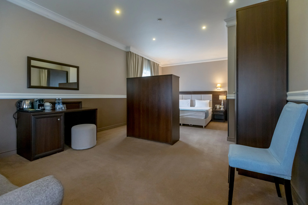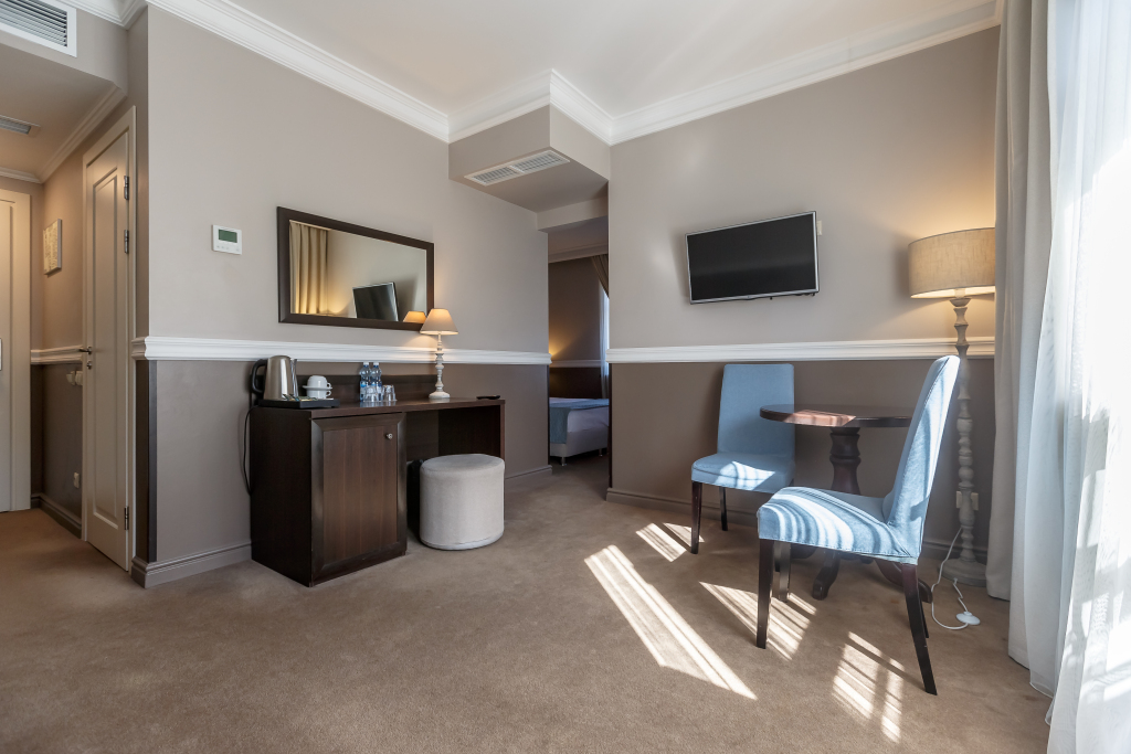 В номере гостей ждут телевизор, мини-бар и халат. Перечисленные услуги есть не во всех номерах.