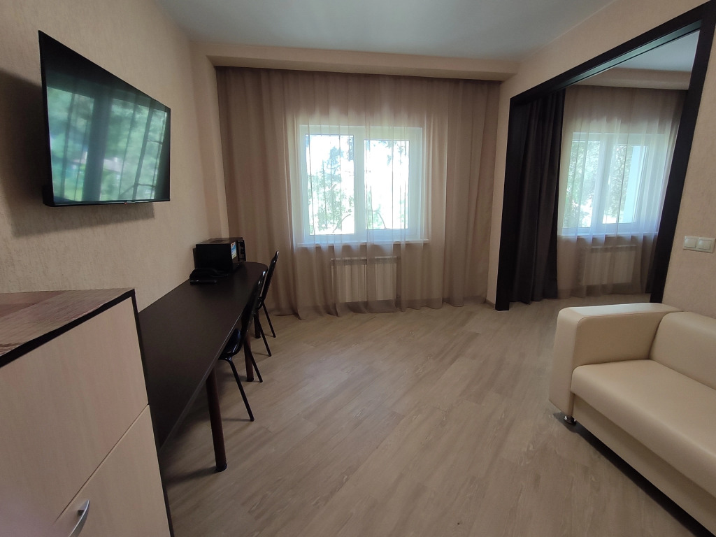 В номере гостей ждёт телевизор. Оснащение зависит от выбранной категории номера.