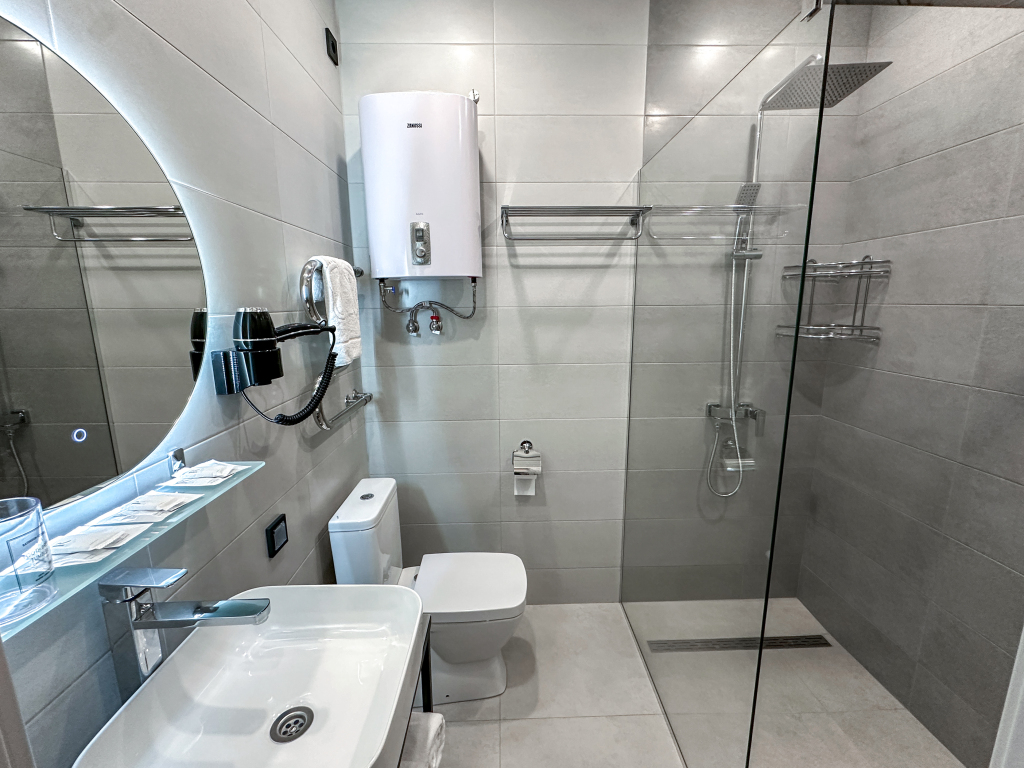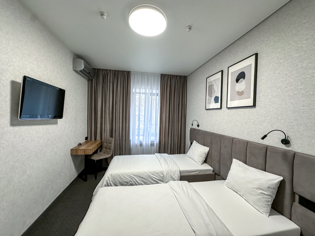 В номере вас будут ждать телевизор и халат. Оснащение зависит от выбранной категории номера.