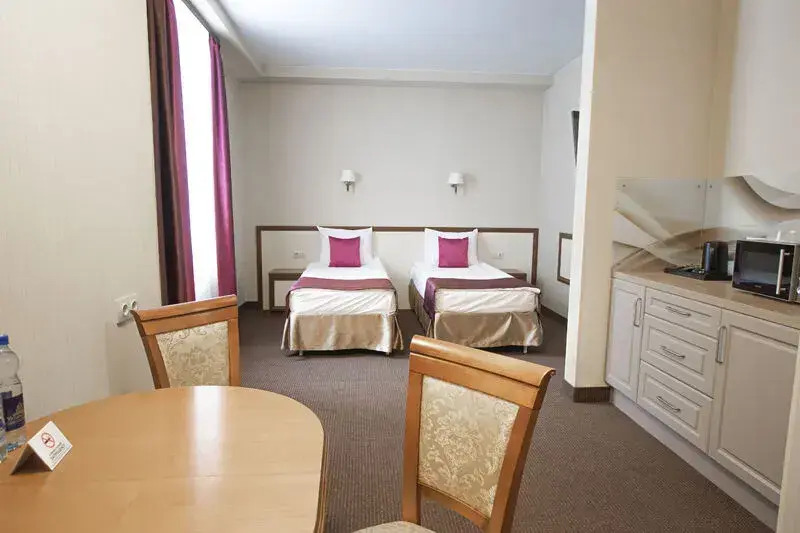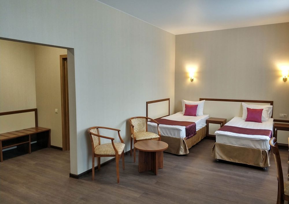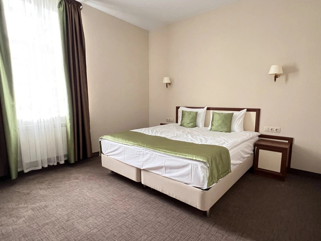 В номерах «Стандартный номер вид во двор 2 этаж» и «Стандартный номер с видом на Волгу 2 этаж» два типа кроватей на выбор — двуспальная или две односпальные. Гостям в комментарии к бронированию необходимо указать какой тип кровати необходим.