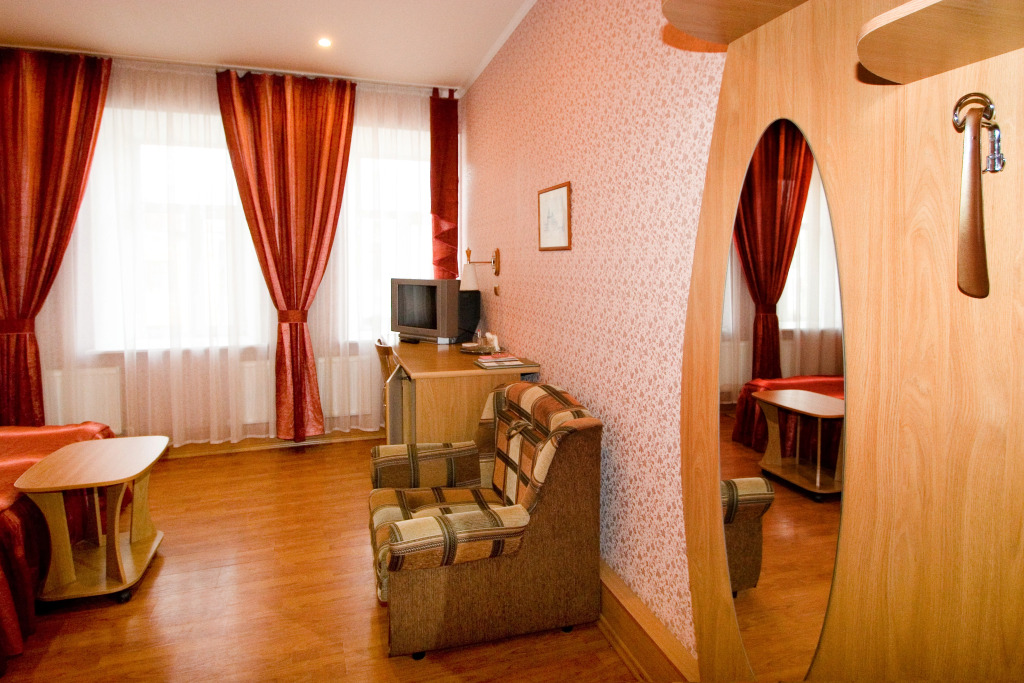В номере вы найдёте телевизор и халат. Оснащение зависит от выбранной категории номера.