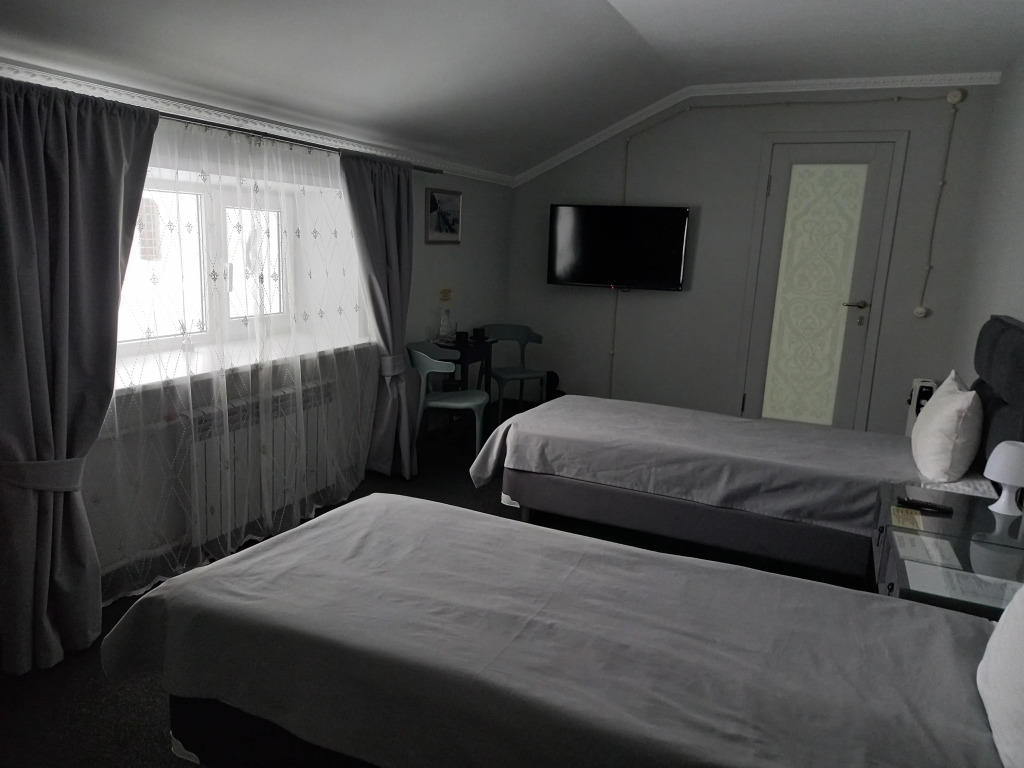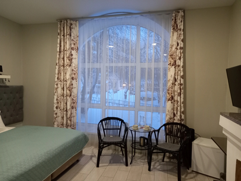 В номере есть телевизор, мини-бар и халат. Перечисленные услуги есть не во всех номерах.