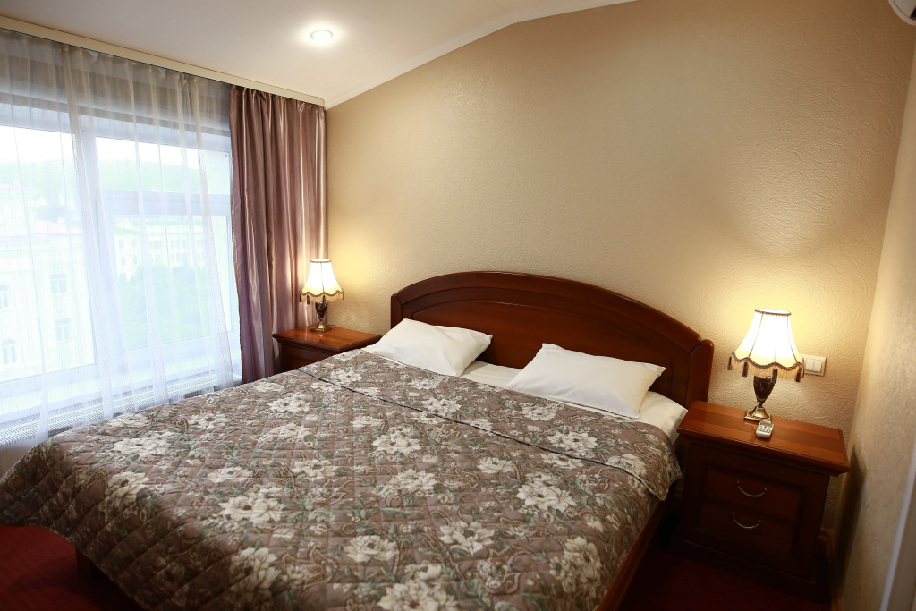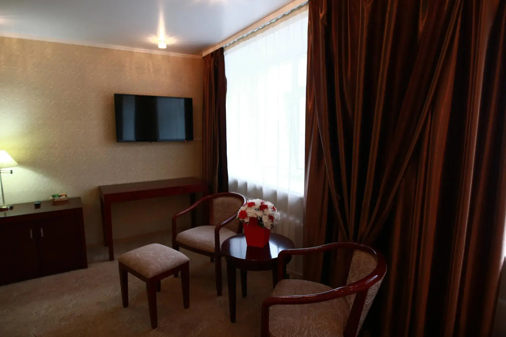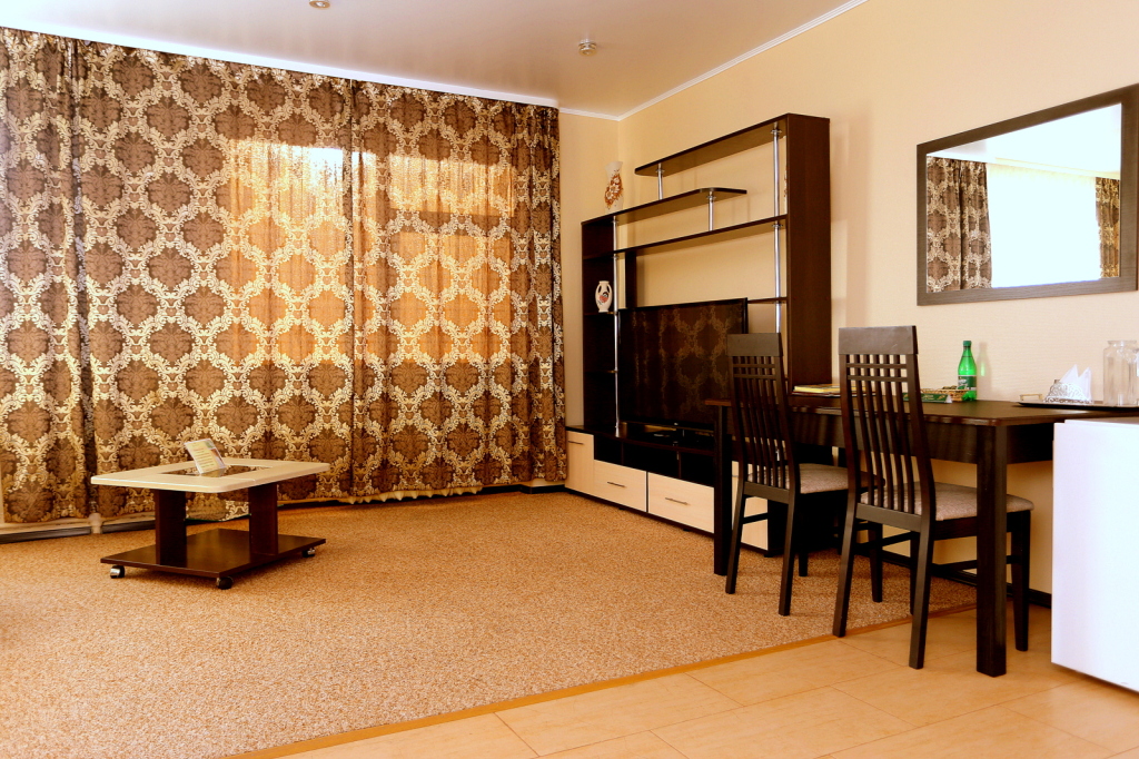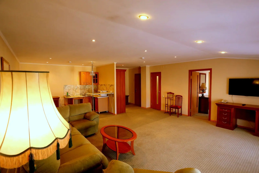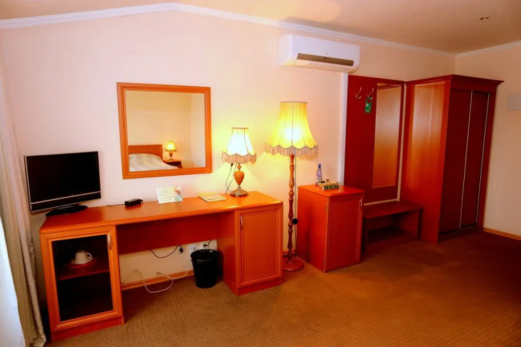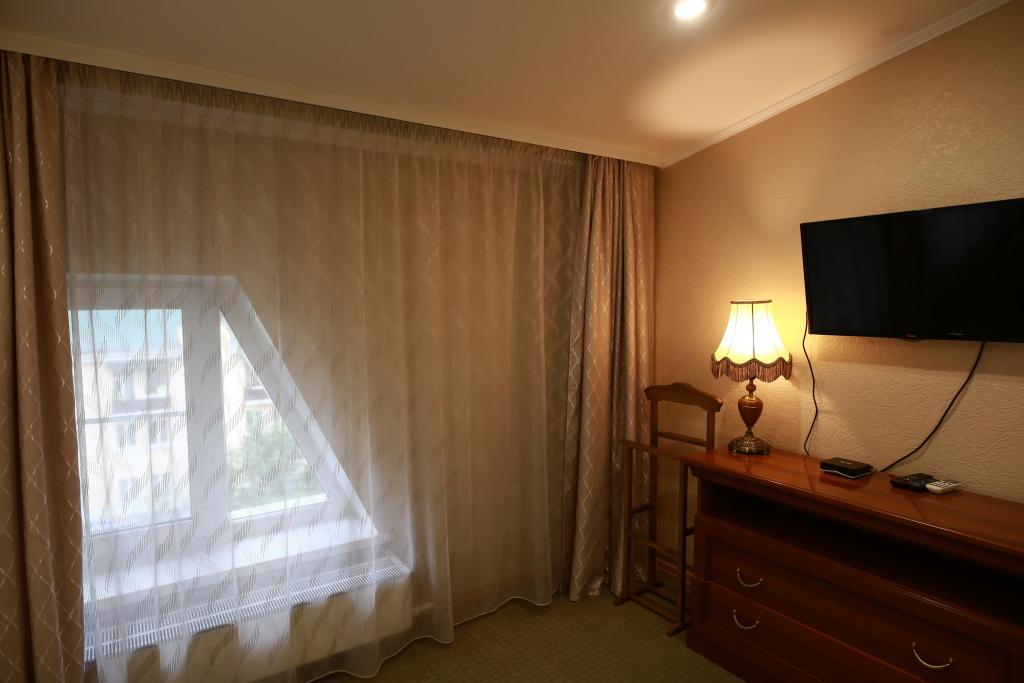 В номере вас будут ждать телевизор и халат. Оснащение зависит от выбранной категории номера.