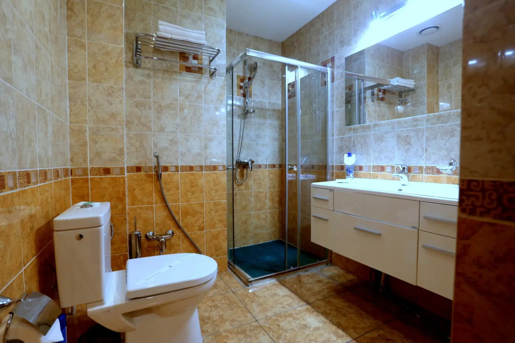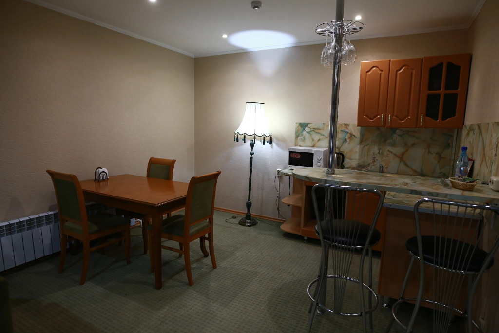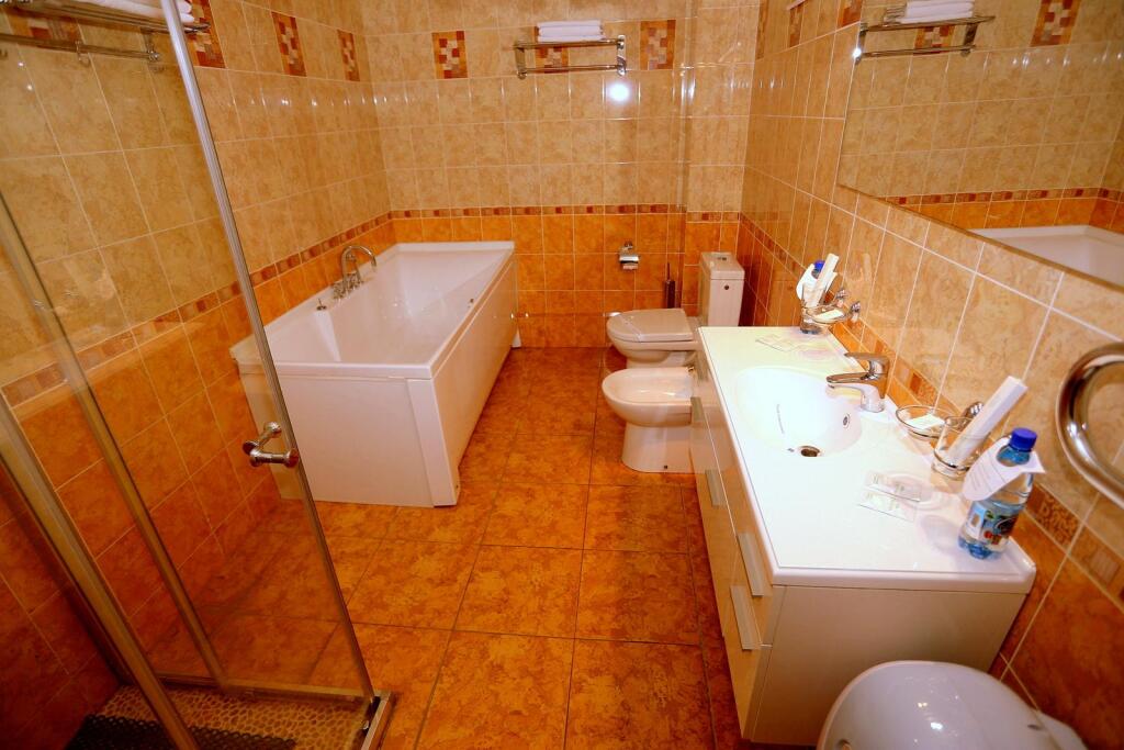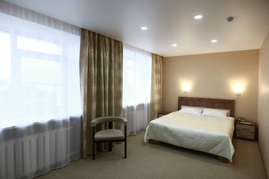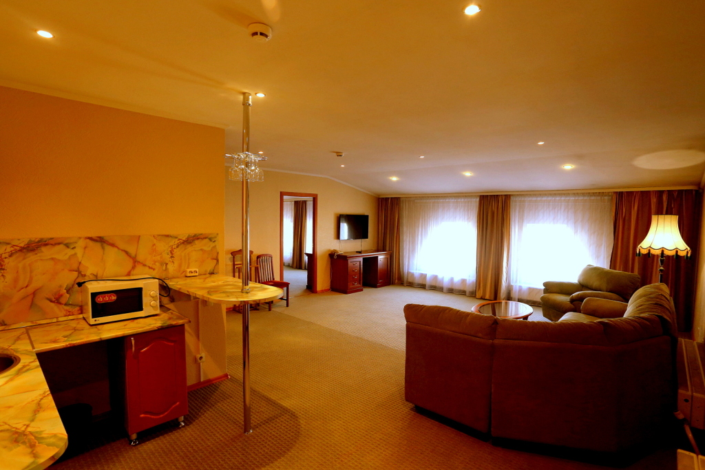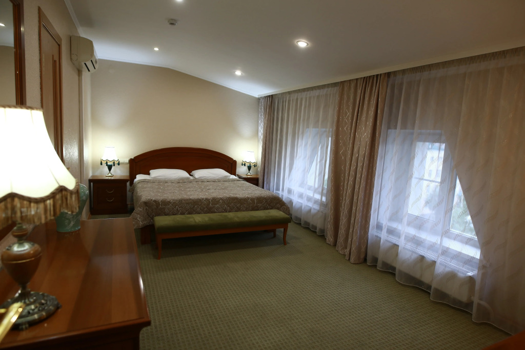 В номере вас будут ждать телевизор и халат. Оснащение зависит от выбранной категории номера.